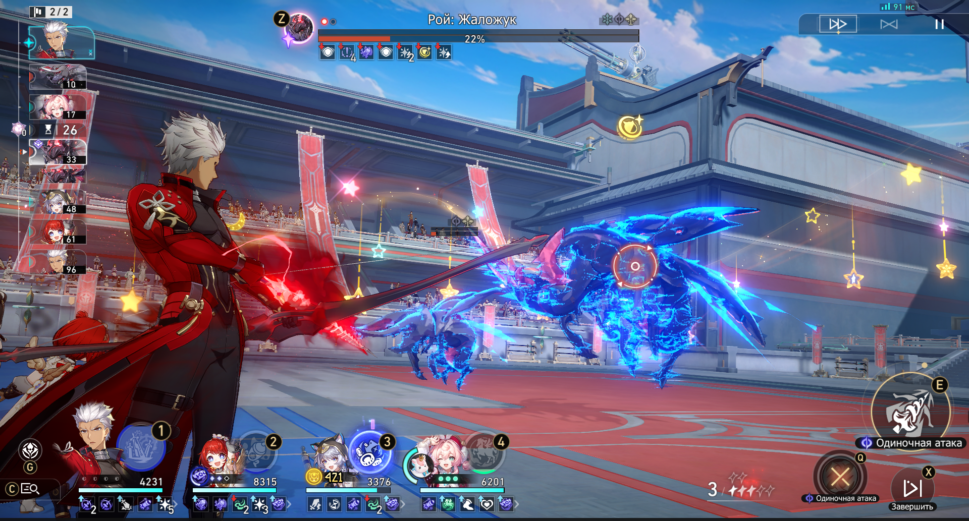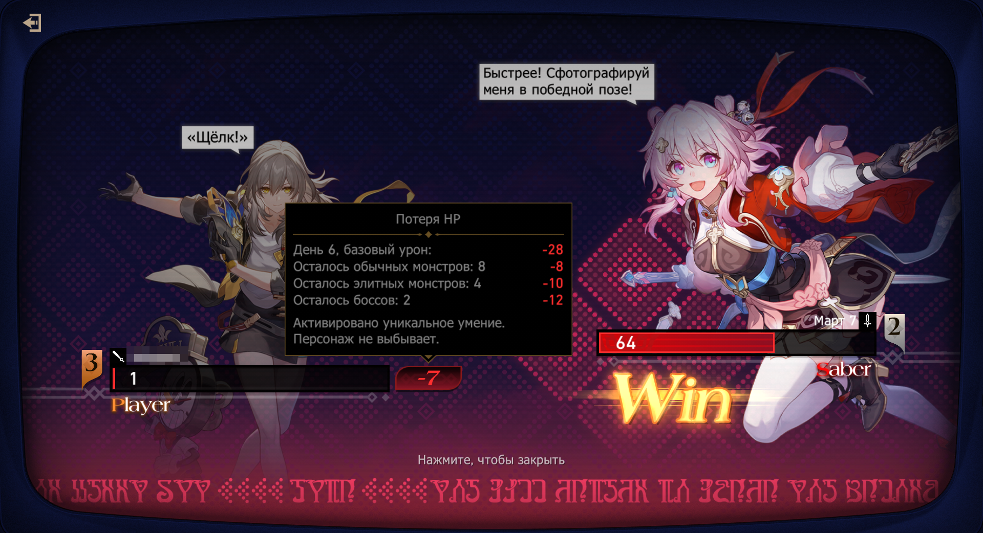 Какой же бесячий коллаб. Обычно в хср развлечения веселенькие, тупые, но веселенькие, с химерами там, бассейновые бои, но это... Так заебали эти бои, но они все не кончаются. Я поставил автобой, конечно, но мне даже присматривать за экраном неохота, такая-то унылость. Кому вообще в голову пришло, что это может быть весело? Или я один такой, а все остальные внимательно читают карточки усилений и все такое?