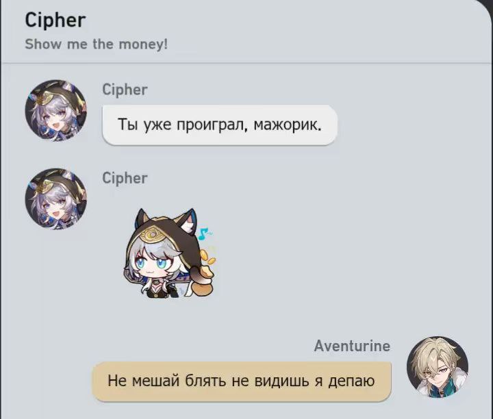У меня чот чуйка, что если сделать диаграмму Венна, на которой будут представлены люди, которые недовольны тем, что Ляо выпускает кокблочные пачки, и люди, которые заносят деньги - будет нарисован сплошной круг. Почему-то никто не рякал, а все резво побежали крутить Линшу и Фугу (даже мем был - "везде эти двое"). Потом под БГерту крутили зеленого сосисона. Крутили Касторку с Гнилоциной. Ща вот будете опять крутить Керидру под Фаенона. Вы же своими руками создаете проклятый мир, в котором вам приходится жить. Кидая деньги в баннер - вы поощряете такое поведение Ляо. Какой смысл возмущаться, если Ляо делает то, чего от него хотят люди.