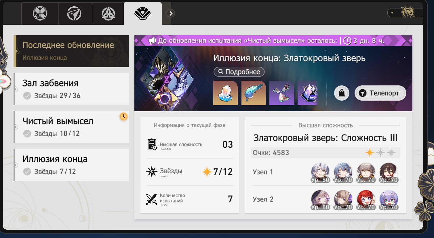 Наконец-то прошел коллаб ивент. Как-то слишком быстро он пролетел. Сюжетная часть никакущая. Коллабные персонажи в ней не делают вообще ничего, просто болтаются фоном. Продать их через сюжет вообще не пытались, ощущение, будто вставили их в последний момент в какой-то давно отброшенный квест. Рогалик вообще прошёлся за один вечер, настолько всё было просто. Не понял, это ивент сам по себе таким лёгким сделали или Базеноныч просто как обычно брутфорсит весь контент в игре. Я правильно понимаю, что ещё не началась вторая половина патча, а нового контента уже не будет?