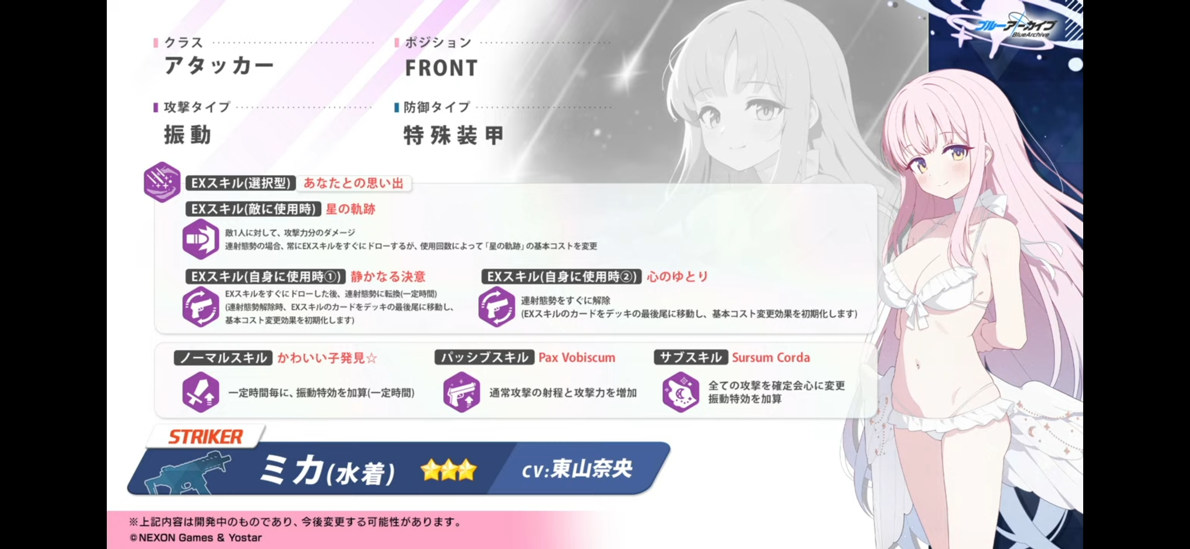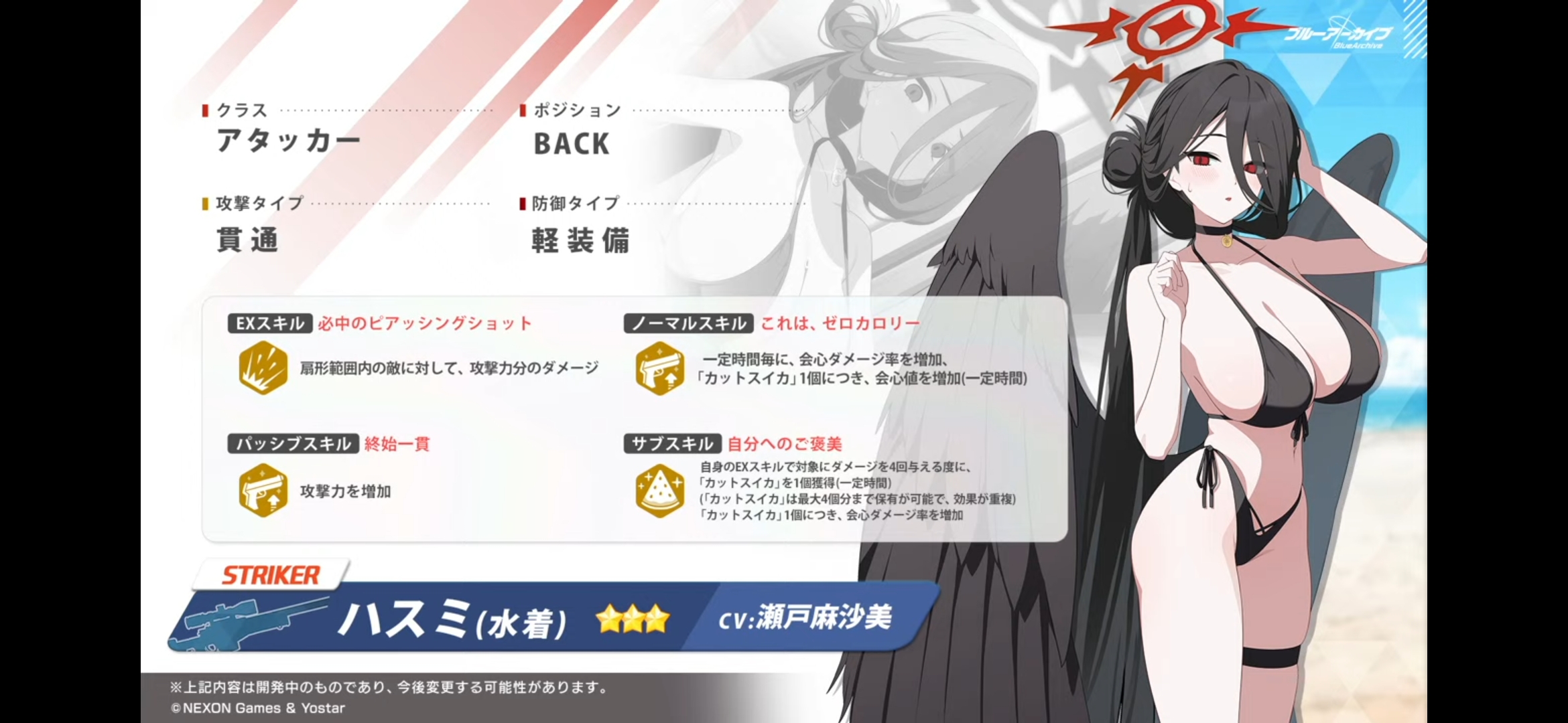 >>5251170 Класс Позиция Нападающий назад Тип атаки Тип защиты Общение Легкое снаряжение 【Исключительный навык Обязательный к просмотру пронзительный выстрел Обычный навык] В нем нет калорий С каждым заданным временем увеличивается количество поражений сердца. Увеличивает остроту зрения на 1 единицу урона от "Разрезанного арбуза", увеличивая силу атаки против врагов в пределах формы бровей (на определенный период времени) Пассивный навык Финальная покупка Дополнительные навыки Для себя этот Ракуми Увеличенная сила атаки Каждый раз, когда вы наносите цели 4 урона своим навыком EX, на нее наносится 1 "Разрезанный арбуз" (фиксированная пара) ["Разрезанный арбуз" может содержать до 4 частей, эффект добавляется! 1 разрезанный арбуз увеличивает урон Кайшин ударник Хасуми (купальник) резюме: Асами Сето Вышеуказанный контент находится в стадии разработки и может быть изменен в будущем. NEXON Games & Yostar