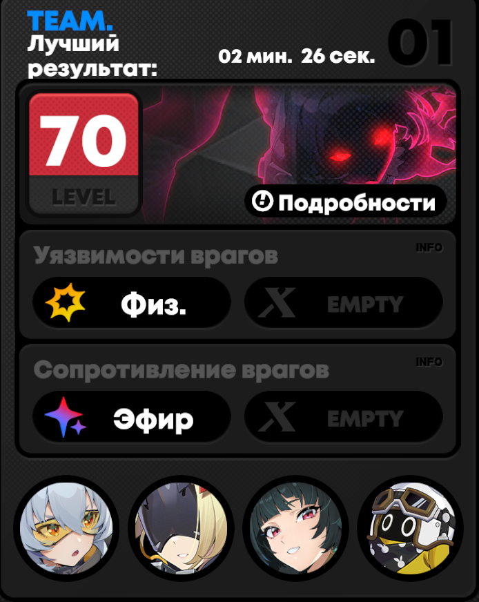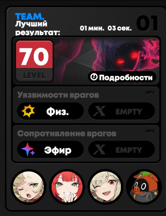 Возможно Орфи+Энби похуй на уяз, если резист к огню то дамажит Энби а баф Орфи никуда не пропадает, -20%дефа и +20%дмг это 0.5 от Николь +урон. Если к электро, то бафает Энби а дамажит Орфи. Звучит конечно как хуйня полная, но таков путь атаки.