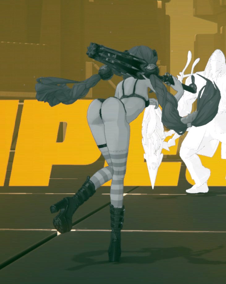 Охуенная же пачка, нихуя не видно все засрано афтершоками, все трое на поле, вокруг скачет слепой снайпер, неуклюжая рогатая девка плюхается на жопу и энби аутично дрочит свою метку