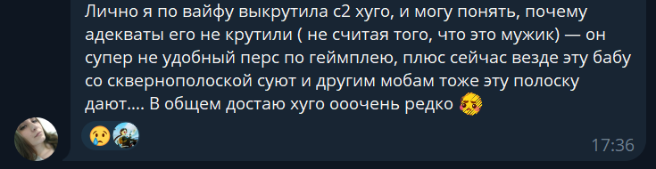 Ребята такая тема, с релиза поигрывал вяло в зетку, на акке из дд мияби с сигной, эвелеин тоже с ней и много подсосов в том числе и астра. Но в патч с рыбалкой так задушился, от сюжета в том числе что дропнул нах на пару месяцев. Щас вернулся смотрю на писюань и у меня стойкое ощущение что я себе заруинил акк. Не в плане крынь, мне пох на эндгейм но это буквально самый секс персонаж в зетке, все которые у меня и эта безжопая лиса - мне не нравятся