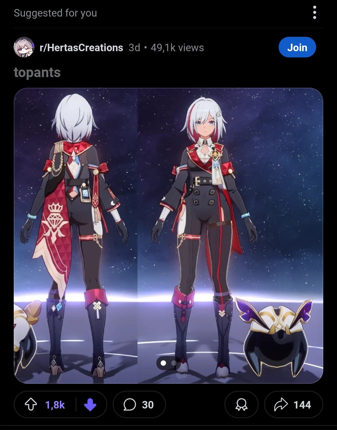 >>5253687 Да. Я сейчас кайфую от такой тяночки в другой гаче. Вот бы в Геншине хоть в Снежной такое завезли. А не ебучие вечерние платья на всех подряд