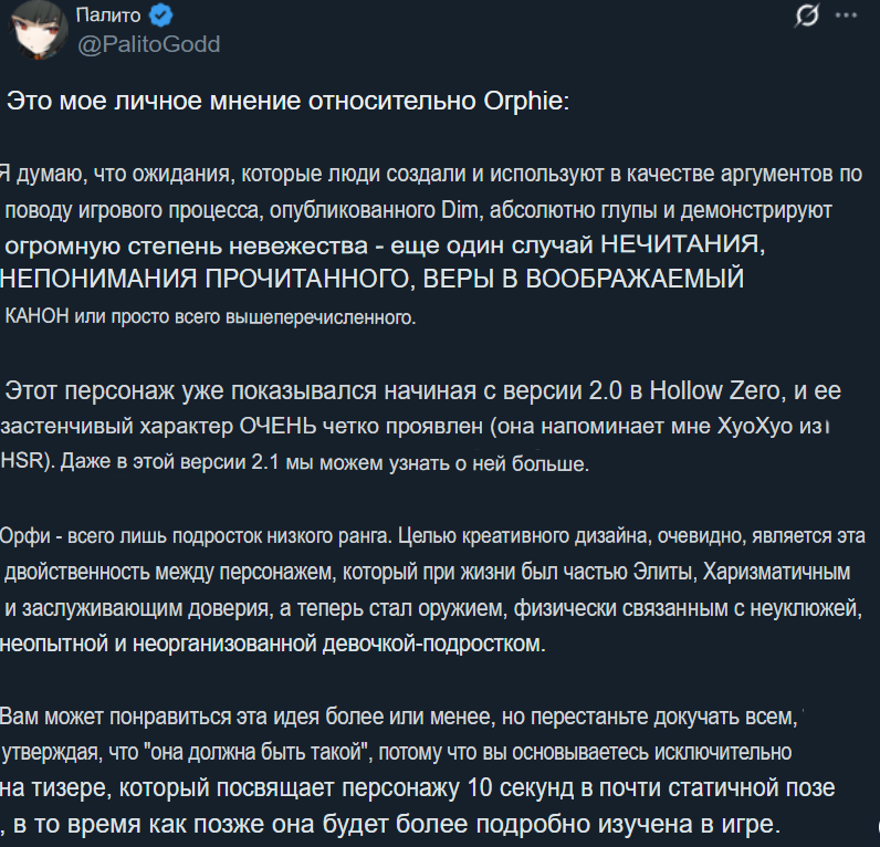 Как же не хочется после проекта З в проект Г возвращаться, просто пиздец. Девчачьи скины приятные, даже без особого нейрокала, прокачка как в Г не душит, даже сосисоны неплохо сделаны (я из тех кто крутил Скуфа и кайфую,да я, но на жопу Бернис приятнее смотреть, а то скажете еще что я паймона), тут тупо ВСЕ лучше по сравнению с Г. А ведь я давно еще пылесосил симулятор собирания сахарков от и до, но заебало на вулкане, недавно решил снова попробовать и понял что не хочу от слова совсем. И теперь жду с тредовичками кролю делать крольчат, достал милую безжопую аутистку с домиком даже (я вкатывался в З где то на первом баннере Астры), и кайфую. Даже ивенты и те забавнее теперь кажутся. Одно не нравится,в музыке все же хочется не китаекайфа а как в 1.х ДнБ, Джангла, вот этой вот уличной темы всей, но я готов ТЕРПЕТЬ, мне не привыкать Зачем написал? А хуй знает