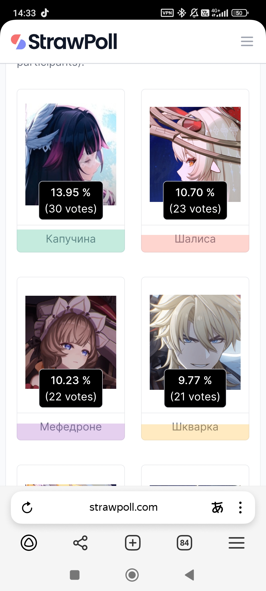 Николь. Красивая, по описанию так вообще охуенная девочка. Статный и величественный ангел, который на деле оказывается дружелюбным пиздячим ящиком. Мастпулл хотя бы на С0 независимо от кита. Айно. Meh. Дизайн всратый, характер в трейлере не показала, скорее всего 4 звезды юзлесс кал. Похуй+похуй Варка. Надеялся на новый тип модельки здоровенного бородатого мужика. Внешне получился очень спорным, но если из него сделают литературно Гинтоки, то мастпулл С0. А если нет, то нахуй он нужен? Ягода. Максимально никакая, надеюсь 4 звезды. Мегапохуй Инеффа. То же самое, это ещё и не девушка, а имитатор женщины. Выглядит как говно, даже хуже некоторых 4 зв чемпиков Дурин. Ебаный шотик. Судя по трейлеру, спасибо что не голопуз в шортиках. Если будет имбой, то можно коинфилп въебать на С0, а так нахуй надо Сандроне. Не будет играбельной скорее всего. Похоже что она будет местным антагонистом. Но если играбельная - обязательна к кручению Лаума. ИМХО очень скучный дизайн. Будем посмотреть как она себя в сюжете покажет, а пока что скип Нефер. Очевидная Нефертити из Сумеру. Выглядит ахуенно, С0 точно возьму Кирилл мать его в сраку Чудомирович. Ничего не понятно, вместо короткой стрижки сзади огромный конский хвост. Скорее всего скип КОЛУМБИНА. Как же я долго этого ждал. В Лаццо от неё аж мурашки были, но в трейлере как-то послабее выступила. Платье странное получилось, многие фанатские одёжки были лучше. Но мб это просто сказывается длительное настаивание в фан артах и искажённые от этого ожидания. Не думал что она будет босая, но ей идёт, ножки лизать. Тут минимум С2 с сигной Алиса. На голове какой-то пиздец, настолько пиздец что аж крутить не очень хочется, хотя всё остальное выглядит вполне себе недурно. С0 точно оформлю скорее всего, слишком хайповая и влиятельная женщина