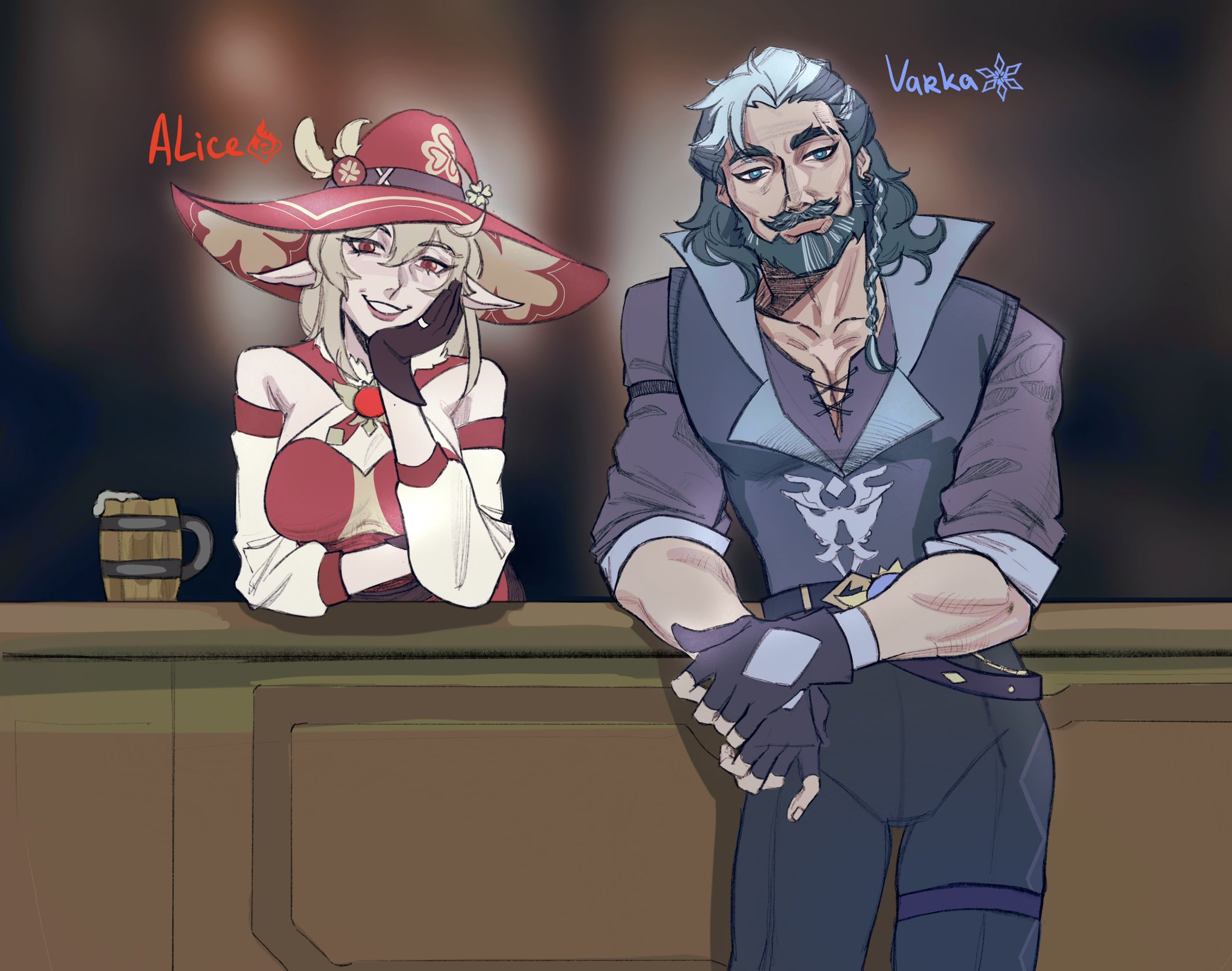 Так, давайте разбираться. Алиса - это Асмодей, любящая своего нового ёбыря хозяина больше всего на свете. Алиса спит с Варкой (см. инцидент с телефоном). Возникает вопрос - а кто такой Варка? Почему он одевается по-цыгански, как и Кея? Зачем клану, основавшему орден бездны, шпионить за Мондштатом? Столько вопросов.