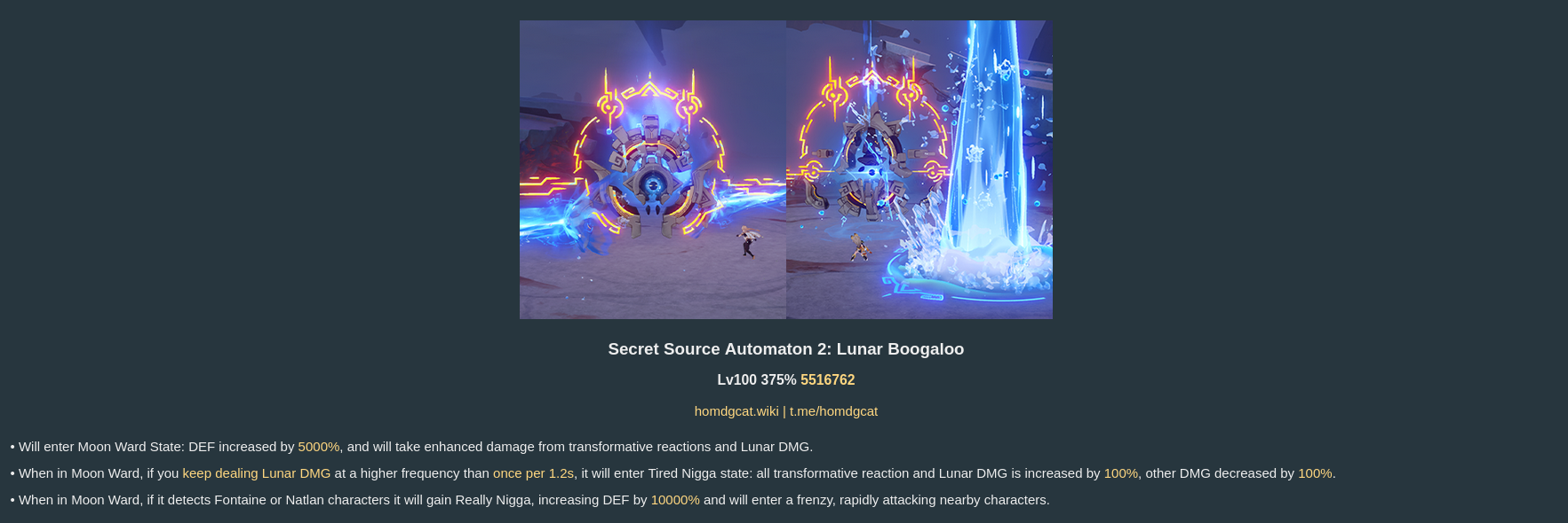 >>5270388 ляо может заставить дамажить любого персонажа крутишь цифры, и всё. можно сделать ему лунную раздувку из лунной жопы. чтобы он раздувал и красил автоатаки в элемент, от этого у него росла скорость атаки и урон. будет такой ёбырь терорюга. я от ляо жду персонажа, который будет просто бить процентами от хп врага, вот тупо чтобы так было и всё.