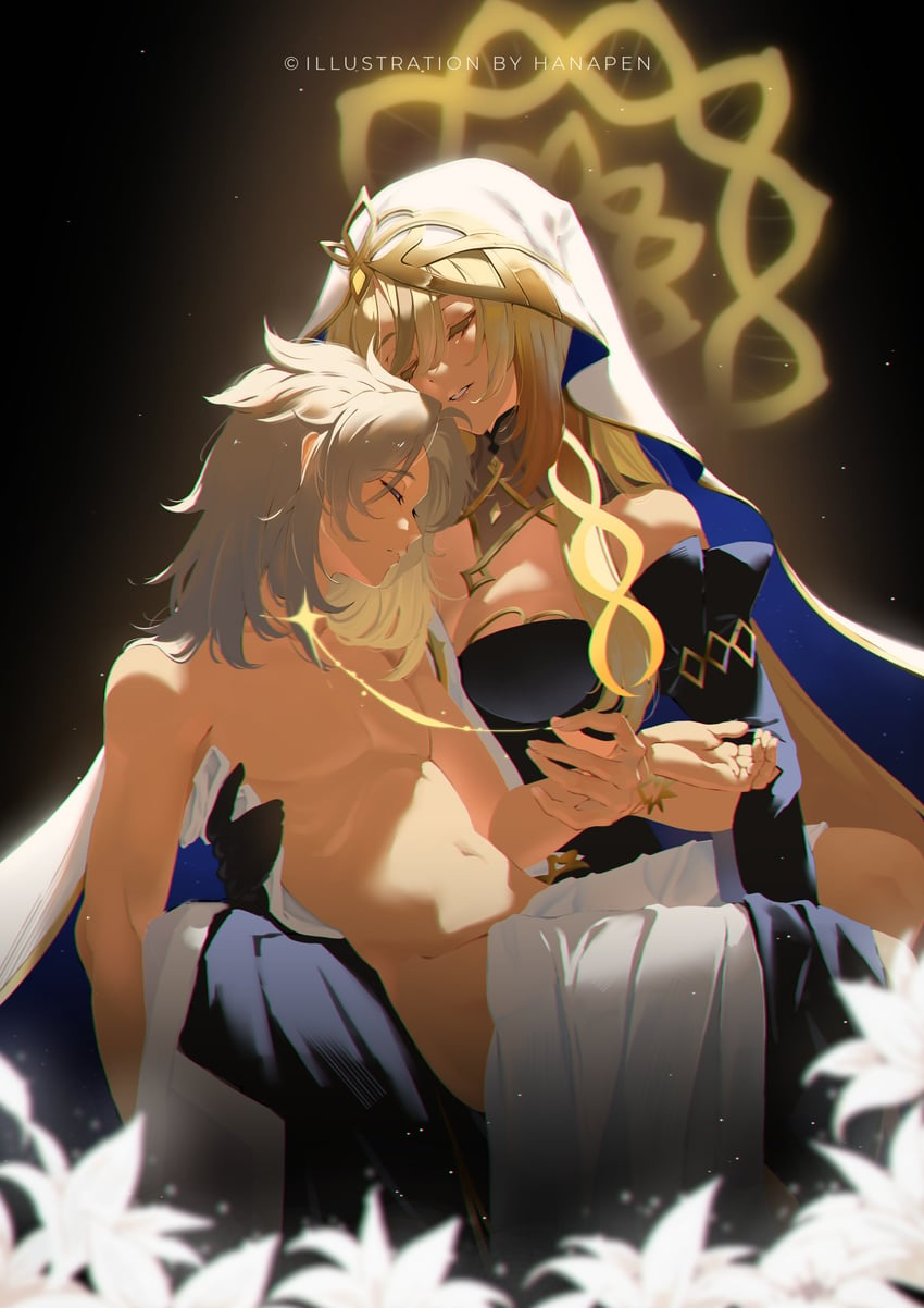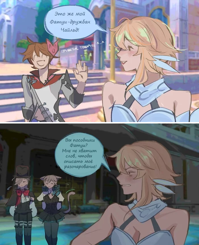 Юэлин и Сутин лидеры фракции света и тьмы из фонтена. Арлекино умрет в конце фонтена. Шабаланке любимчик команды геншина, самый сильны персонаж натлана.