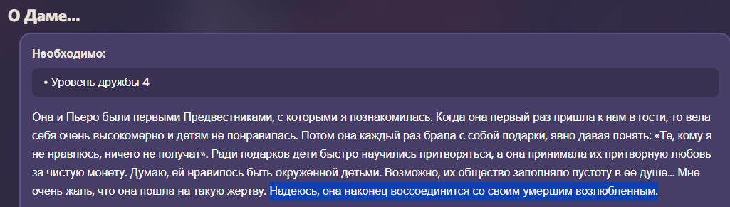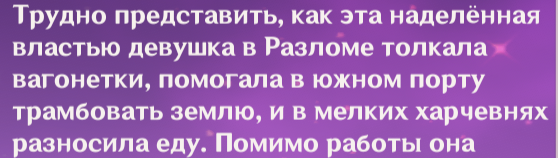 > АХАХАХАХА 1. Прибыла из-за неба. 2. Сторожит теперь его границы. 3. Ведьма-хуедьма, что мутят мутки в Мондштадте с 1.0 4. Ставила шизо-эксперименты над чурлами рофла ради. 5. Составляла путеводитель и имеет связи по всему Тейвату, ловя упоминания о своей персоне даже от некоторых неписей в побочках. 6. Организовывала для нас и спутников полюбившиеся всем летние острова.