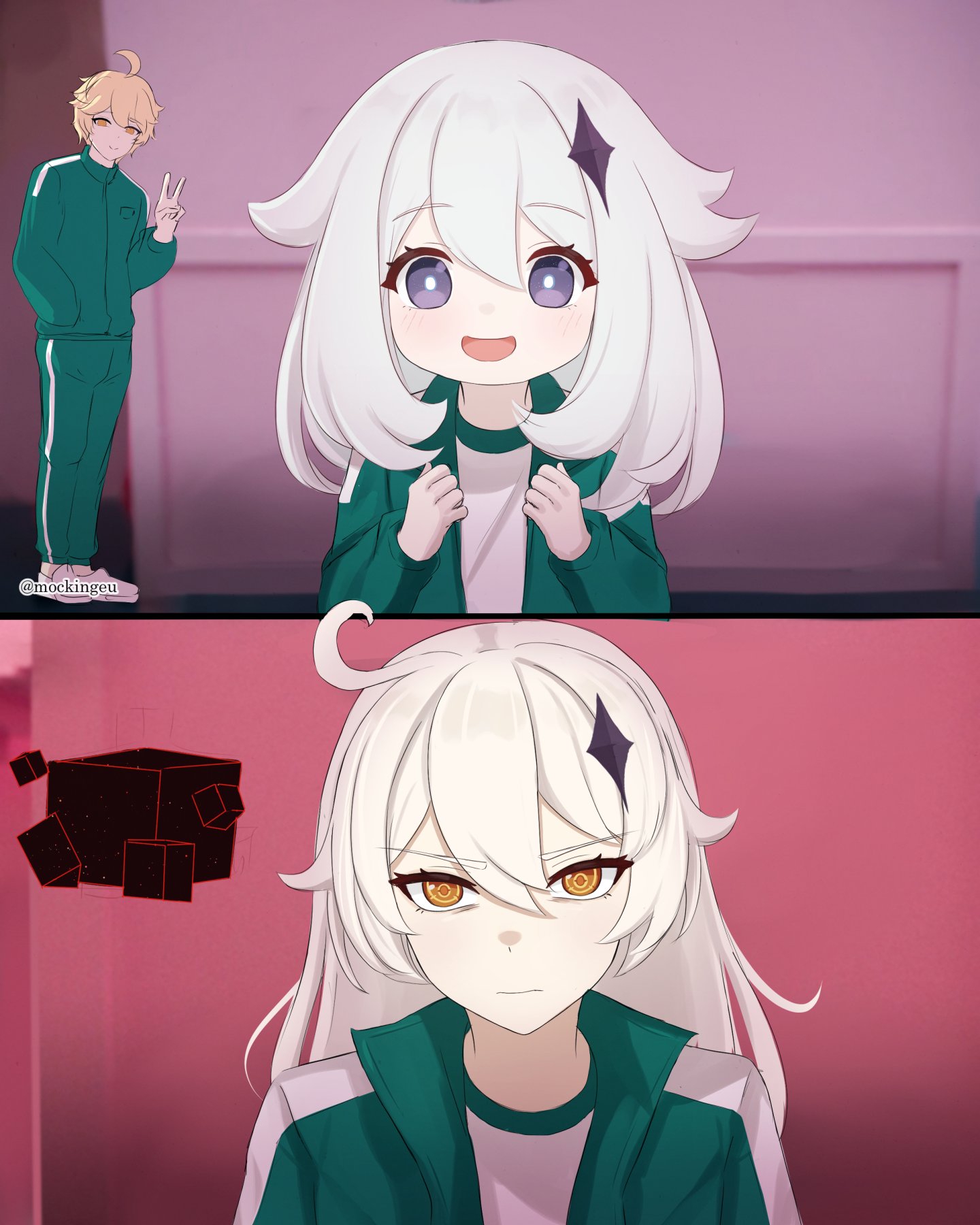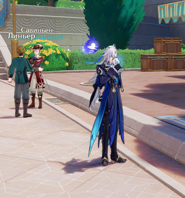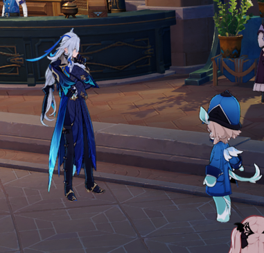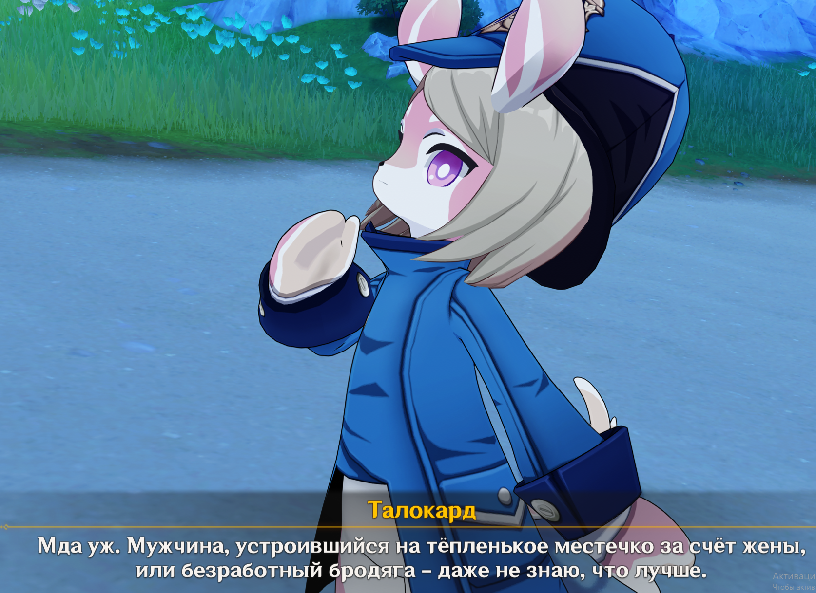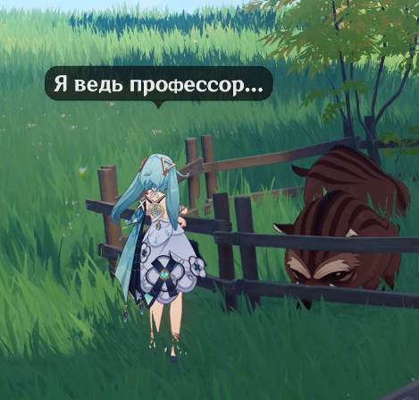к нему подбежала девка та мелкая из фонтейна, которая возле Катерины бегает, он секунду посмотрел на неё и мгновенно отвернул голову и начал пить воду, будто в Снежной живёт, где могут забить камнями если посидеть рядом с девочкой, а не в Фонтейне со свободными нравами