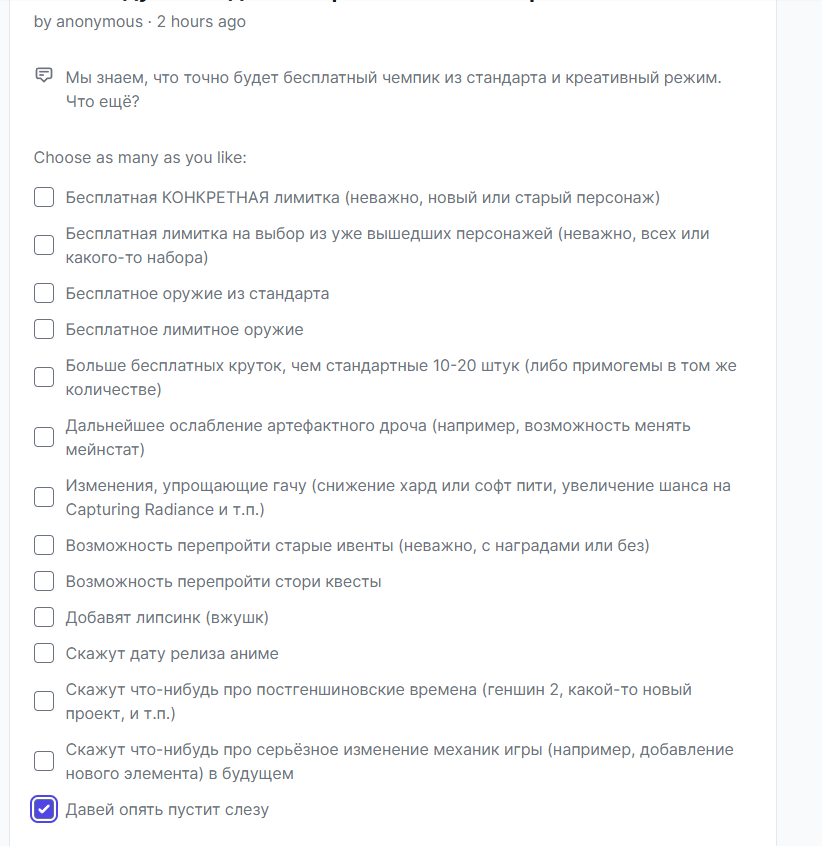 > Скажут что-нибудь про постгеншиновские времена (геншин 2, какой-то новый проект, и т.п.) Вот это вероятно, но скорее всего не в рамках стрима, а в ближайшее время вывалят еще 10 проектов.