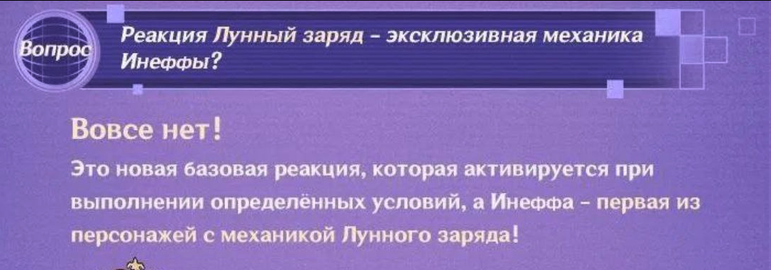 Этот раз не стал исключением. - Сам по себе голый урон реакции Заряжен и Лунного заряда почти одинаков. - У Инеффы есть пассивка, которая додамаживает её личным уроном, не считающимся Лунным зарядом. - В её отряды можно ставить любые стихии, главное вызывать реакцию гидро-электро раз в четыре секунды. В видео говорится, что покатят даже Дендро и Пиро. Позволю себе усомниться - попробуй передуши статус Нахиды. - В конце говорится, что урон конкретного Сайно в обострении и лунном заряде примерно одинаков.