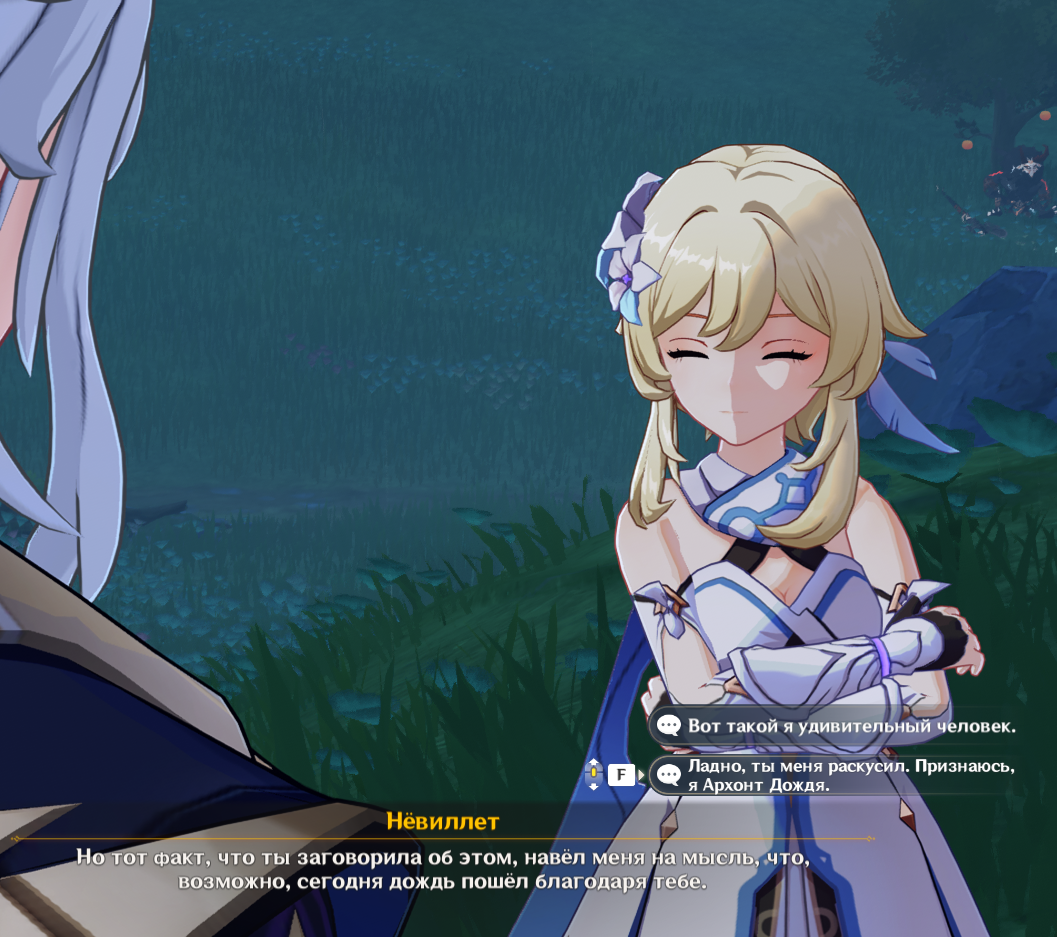 Ещё у каждого персонажа есть скрытая метрика убитых птиц (включая тех, что на Мондштадтском мосту), так что в сюжетке подсчитают количество убитых птиц и выдадут соответствующее наказание. Ещё хуже будет, если таскать в сумке жареных голубей.