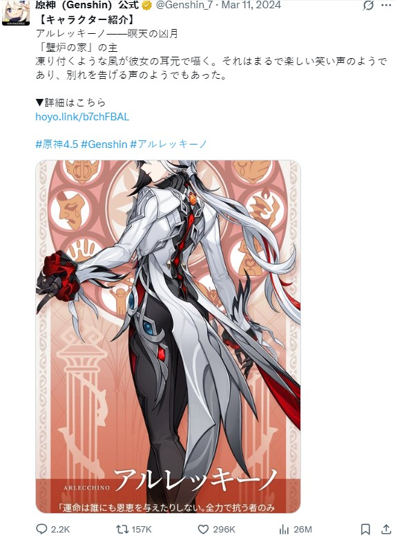 238 тысяч лайков нафиг. Обогнал всех мужских персов и вырвался в топ 4. Впереди только Фурина, Скирк и Арлекино (296к), которые собрали и лайки, и много продаж в Японии.