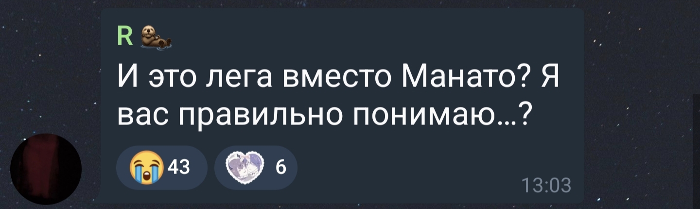 И вот ЭТО вместо Манатика? Ляо, блядь, ты совсем ебнулся?