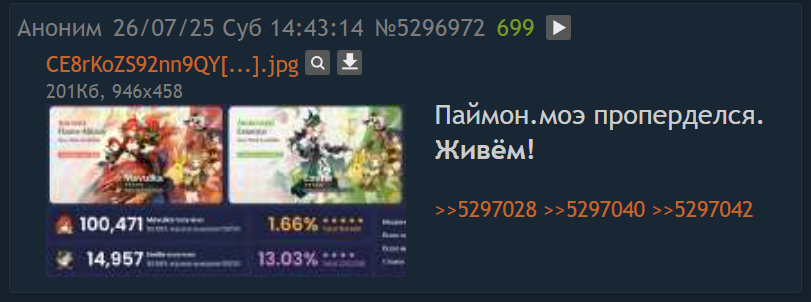 ✦ FAQ и архив треда https://rentry.co/genfaq2chhttps://text.icu/genshinfaq ∙ Скрытие постов со стикерами https://text.icu/gensticker