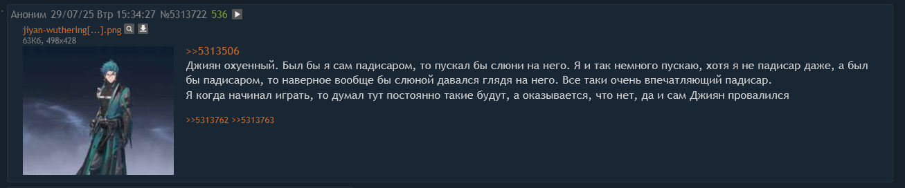 >>5320734 Я вот давно это заметил. То и дело только спокойно обсуждаем вуву, тут же появится кто-то обязательно начнет сравнивать с геншином, или что-то из геншин треда, а потом спустя несколько постов пепа с рассказами что "в вуве только своего насильника обсуждать и могут" и тп и др