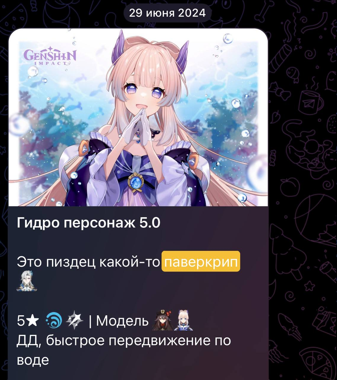 Удалил геншин. Как ранее писал, уже хуй на смолк забил на несколько недель и не открывал его. Сюжет просто убогий начинается. Персы паверкрипают с ахуенной скоростью. Щас любая пизда или хуй 4 сильнее чем половина старых 5 В общем, вернусь наврно когда снежная выйдет, чисто посмотреть что высрали