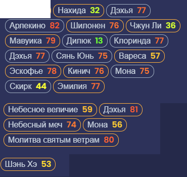 ✦ Показать персонажей картинкой https://akasha.cv/ ∙ https://enka.network/ ∙ Гайды https://t.me/genshin_academy/https://keqingmains.com/