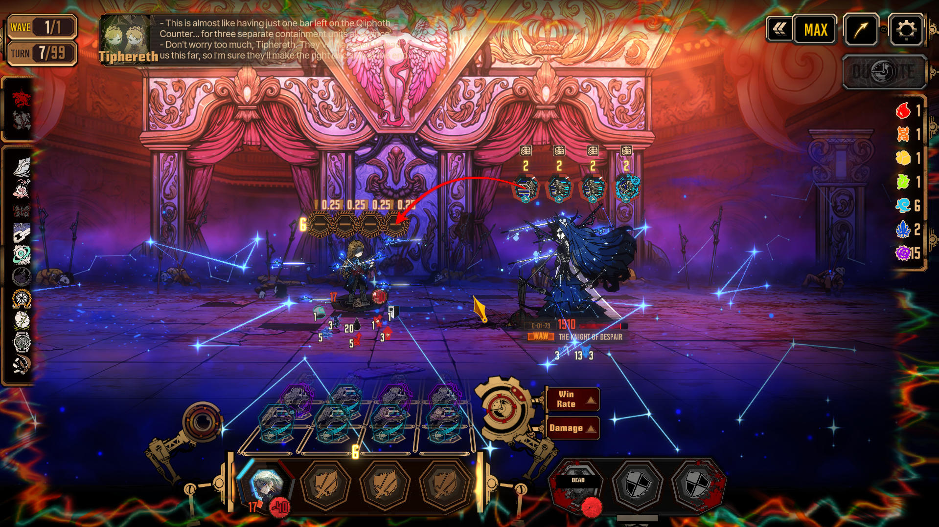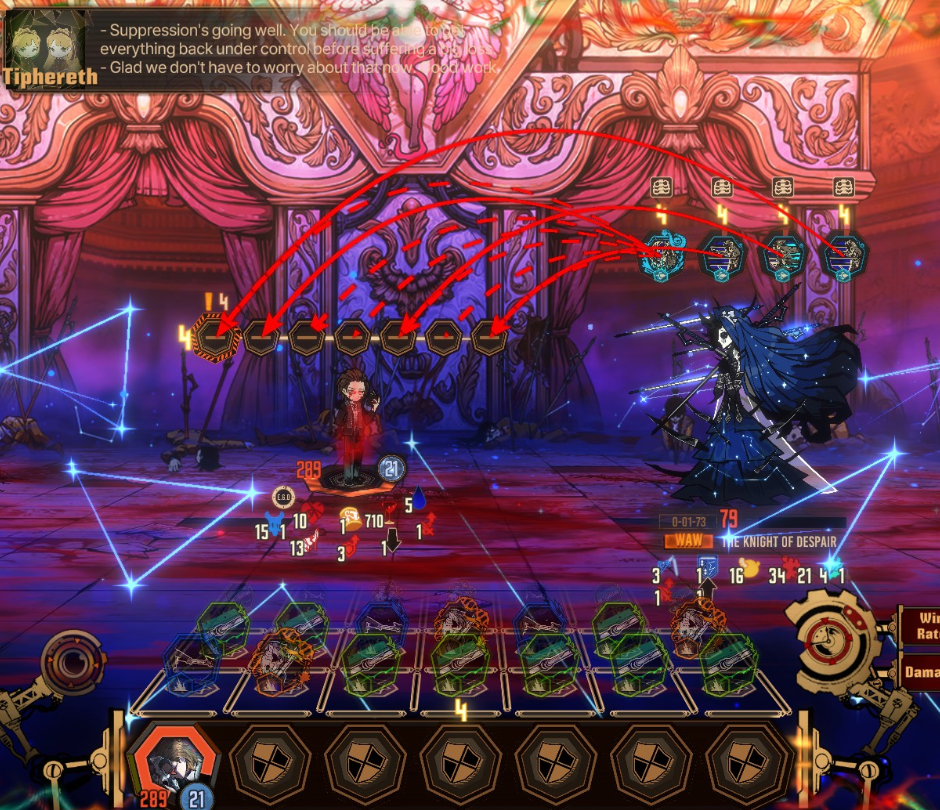 >У тебя тейк буквально Нет, мой тейк в том что игра имеет огромное множество разных механик, взаимодействий и синергий, но однообразный формат калтента баланс части этого калтента и паверкрип направленный на высасывание круток нишевость упоминаемых взаимодействий не поспеваемых за паверкрипом релизов уничтожает otherwise богатый идеями и потенциалом ростер идишек и ЭГО накопленных в игре за два с половиной года. >однообразный формат калтента Практически каждый режим можно свести к "Clear within 10 turns". Я уже объяснил каким образом это делает множество механик тупо неактуальным, поэтому объясню на примере. Есть другая гача, Reverse 1999, абсолютно та же история статусная пошагоублюдия с паверкрипом, но в ней есть множество режимов, которые ставят принципиально разные задачи. Большинство среднего контента (сюжетка и лоупаверлевел калтент) это "Clear within 10 turns", A series of Dusks - аналог МД. Mane's bulletin - неуязвимая абнормалька с полосками жизни, с которой при "смерти" не слетают дебаффы, задача сбить как можно больше полосок (либо определённое количество для наград). Lucidscape - 3 волны гуманоидных с боссом (утрирование под реалии лигмы), у противника бесконечные реинфорсы, но убийство каждого подсоса снижает боссу хп. Reveries - уровни ендгейм паверлевела с жёсткими стейдж условиями и пассивками противника, которые превращают игру больше в паззл. Moth Code (не помню как обзывается тк периодичный режим) - суперпошаговость, механики связанные с ходами работают точно так же, но resolution действий происходит внутри хода для каждого действия, а не в конце хода проигрываются все действия. Если у чейнбаттлера накапливается S3, то им можно произвести ретритоублюдию для активного персонажа активировав S3 и не потратив очко действий. Limbo и каждый 5ый уровень\еженедельник Reveries - 2-4 этапный уровень, персонажи из одного этапа нельзя использовать в другом. Puppet arena - игра играет за тебя Winrate'ом, твоя задача только собирать пачку. UTTU (удалён) - на каждого персонажа можно повесить уникальный бафф или статус + внеперсонажевый слот с 2мя уникальными баффами на всю команду. Нужно пройти на скорость набор из нескольких этапов, внутри которых можно как угодно менять состав команды и баффов (было стартовое ограничение на членов команды, но не имело значения, тк слишком много персонажей позволялось взять).