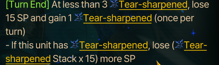 >>5290413 Прожимай s3 как можно чаще. За проюз дают 5 звезд, тоесть к началу твоего s3 на защите уже будет 15. Она вещает в этот момент две метки, поэтому в идеале чтобы на следующих ход она же их и снимала. Вообщем просто считай удары и держи хотя бы двух заек на 10+. Ну и кондинш на использование копроудара он на бефор юз, а не терн старт.