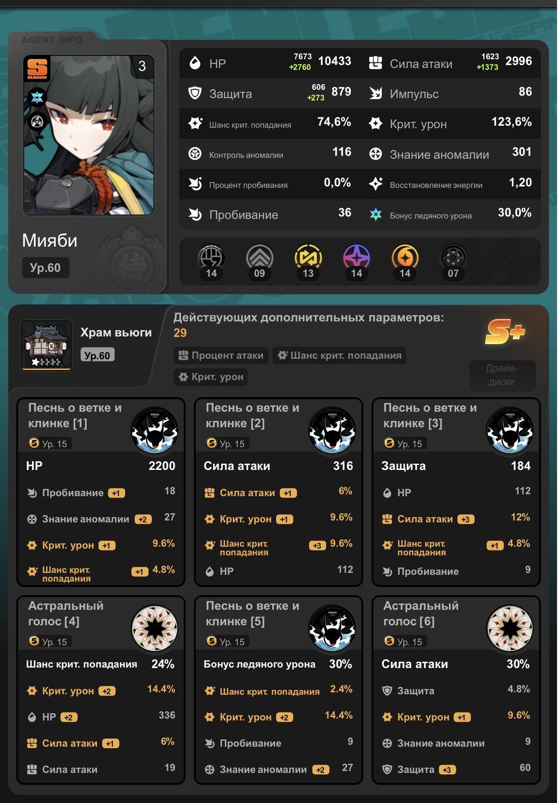 мияби так то по сути самый простой герой в сборке, селф баффов дохуя, все сабки утилизирует, в 4 и 5 и 6 несколько мейнстат опций, атака имба, аномалия и флат пен почти как крит