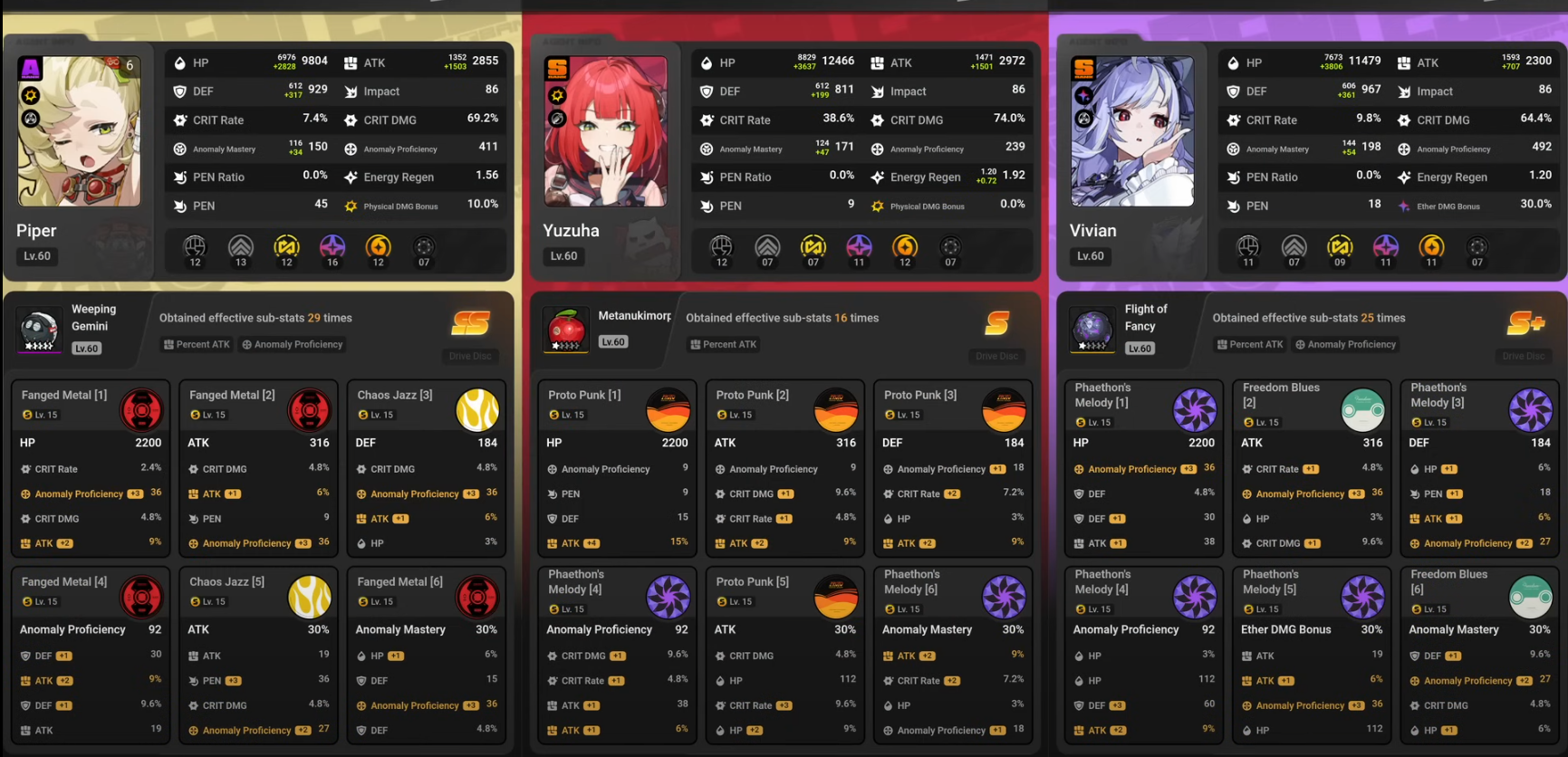 >>5335290 Можешь считать что каждый прок в полезный сабстат дает ~1-2% прироста урона на оснавном дамагере. Круто собранный чар - это до 40 проков сабстатов на критовом чаре и 30 проков на аномалисте. Так что разница процентов 50+ чистого прироста урона. Но это зависит от пачки и каких-то особых стат чеков на чаре.