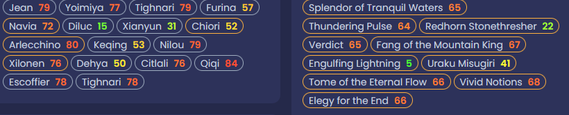 ✦ Показать персонажей картинкой https://akasha.cv/ ∙ https://enka.network/ ∙ Гайды https://t.me/genshin_academy/https://keqingmains.com/