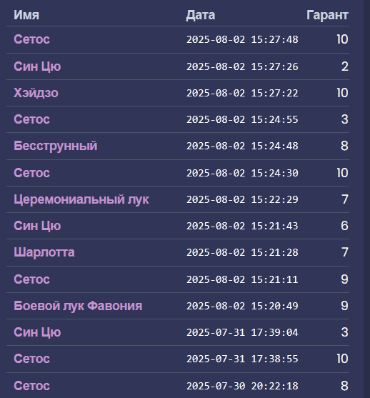 Бесит дроп четверок, новые идут пачками и это не самый крутой баннер, ну или с чемпиком, который уже есть и консты не нужны. Зато вот сейчас пятерку можно и выкрутить, но четверок просто за гранью, Сына и Фишль, камон, ещё в Иназуме выкрутил с6, доп круточка - это неплохо, но у меня там Детектив с2 всего, Горо с1 вообще, Оророну бы консту какую, но нет, иди нафиг, я уже забыл вообще, когда Детектив был на баннере, или архитектор нищеброд, ок, они не особо нужны, но консты-то не повредили бы, все же. И оружейный прям ни о чем, посредственное копьецо в океане фавониев и церемониалов