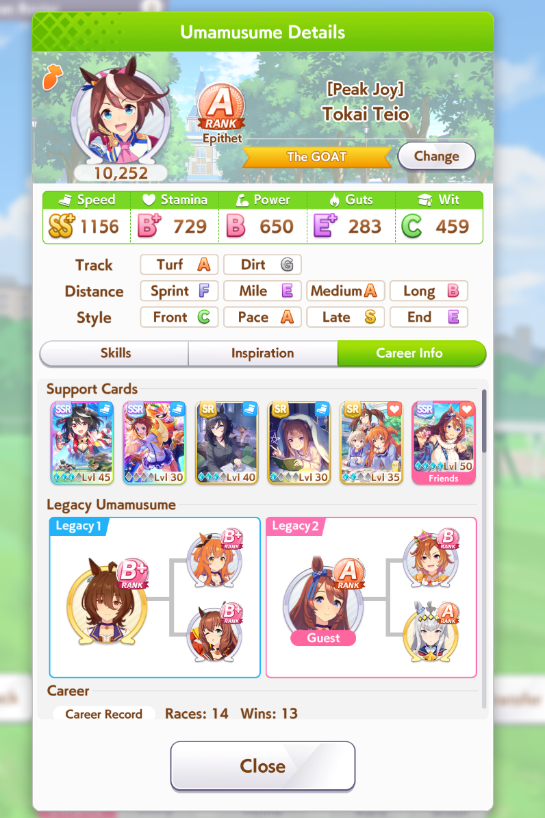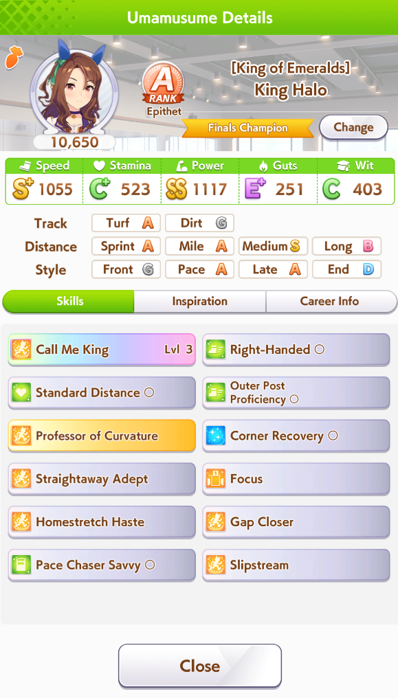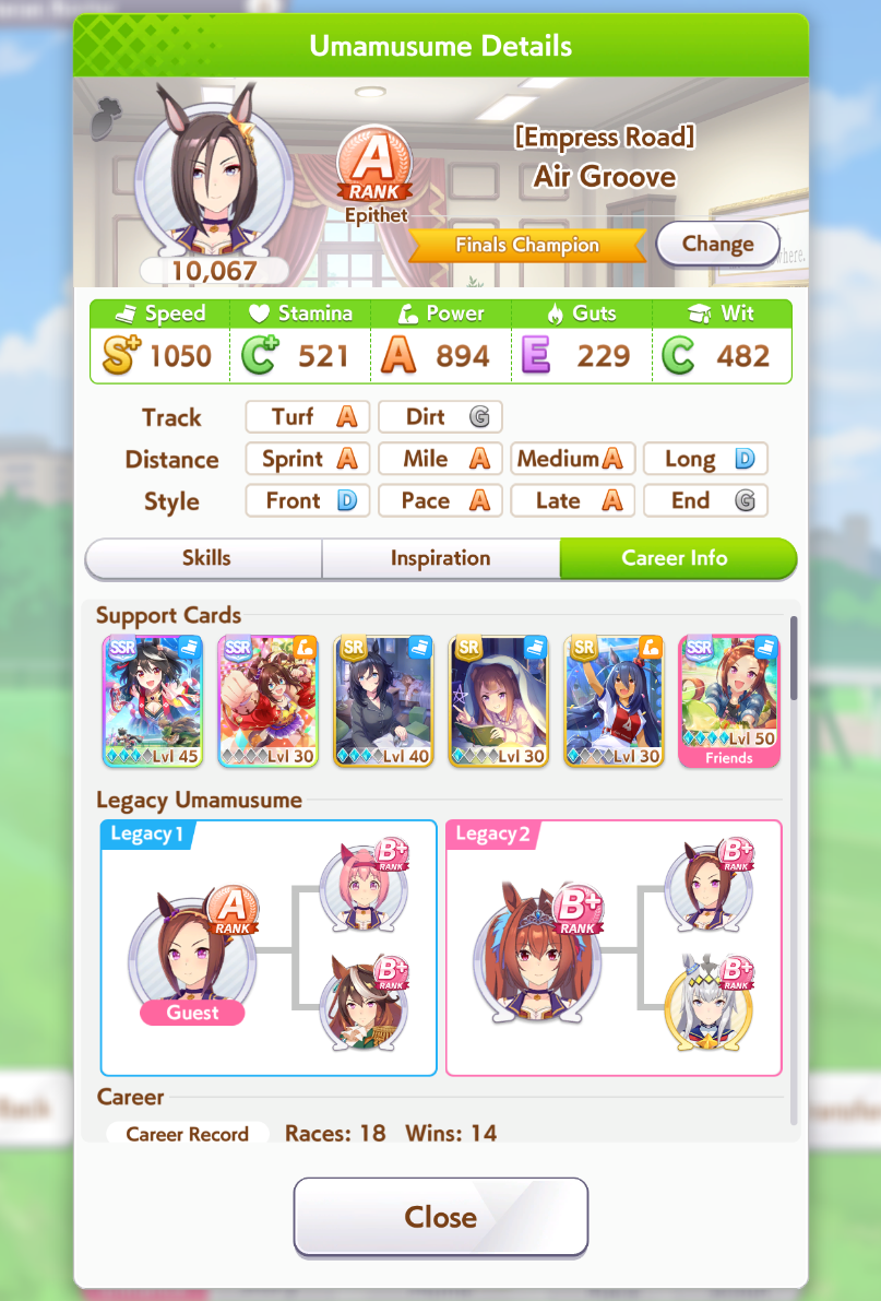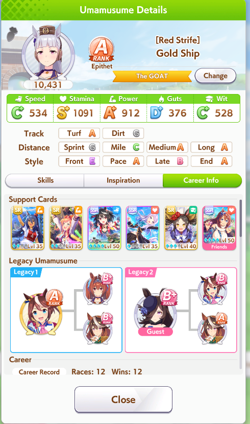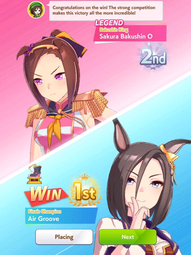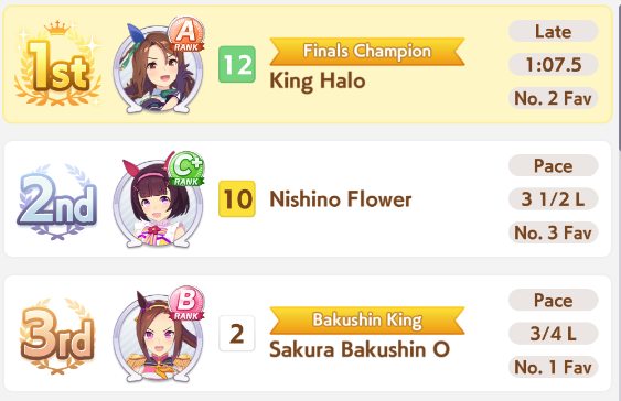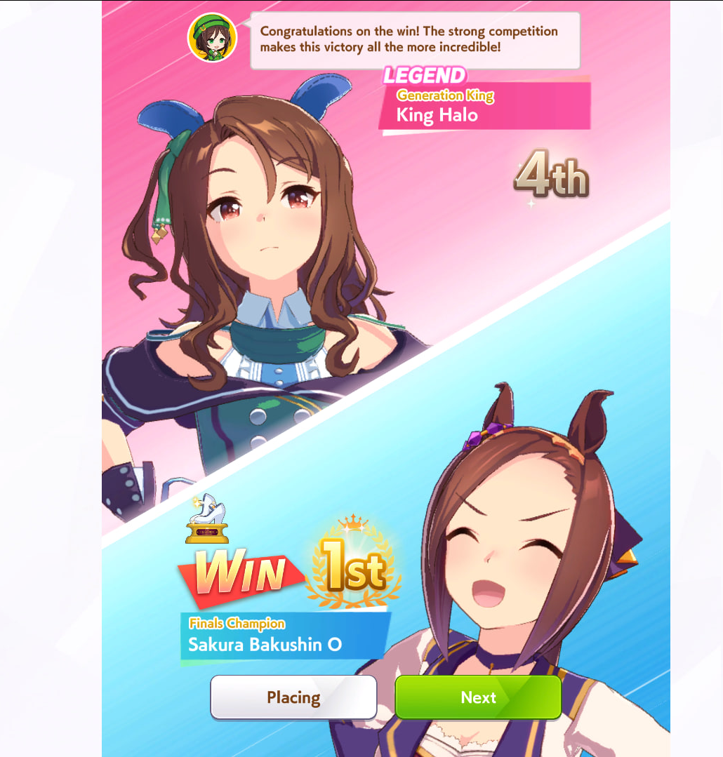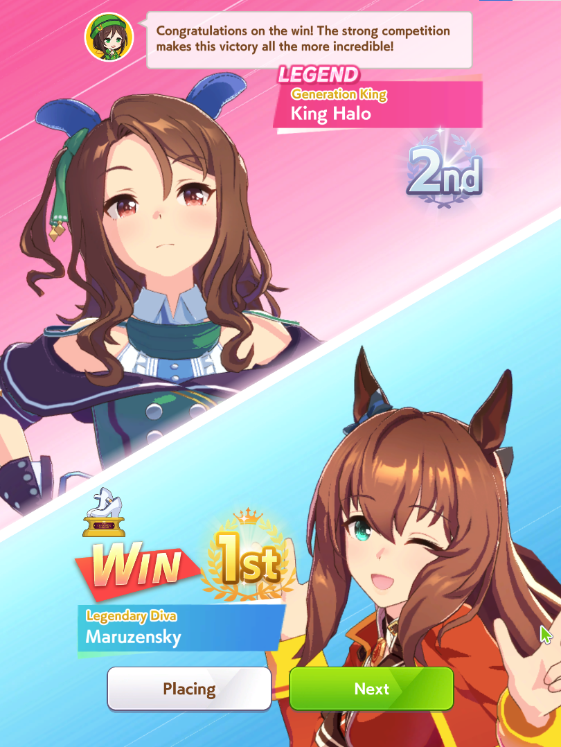 Всё-таки млбшная Китасан взятая у китовичков делает вещи. Даже на столько криво вкачаная Кинг смогла Уру пройти, да еще и не истратив практически ни одного будильника халявный не в счет. Таки шестая закомплитленая карьера из 60 всего, можно сказать символично, но не думал что это так тяжело будет.