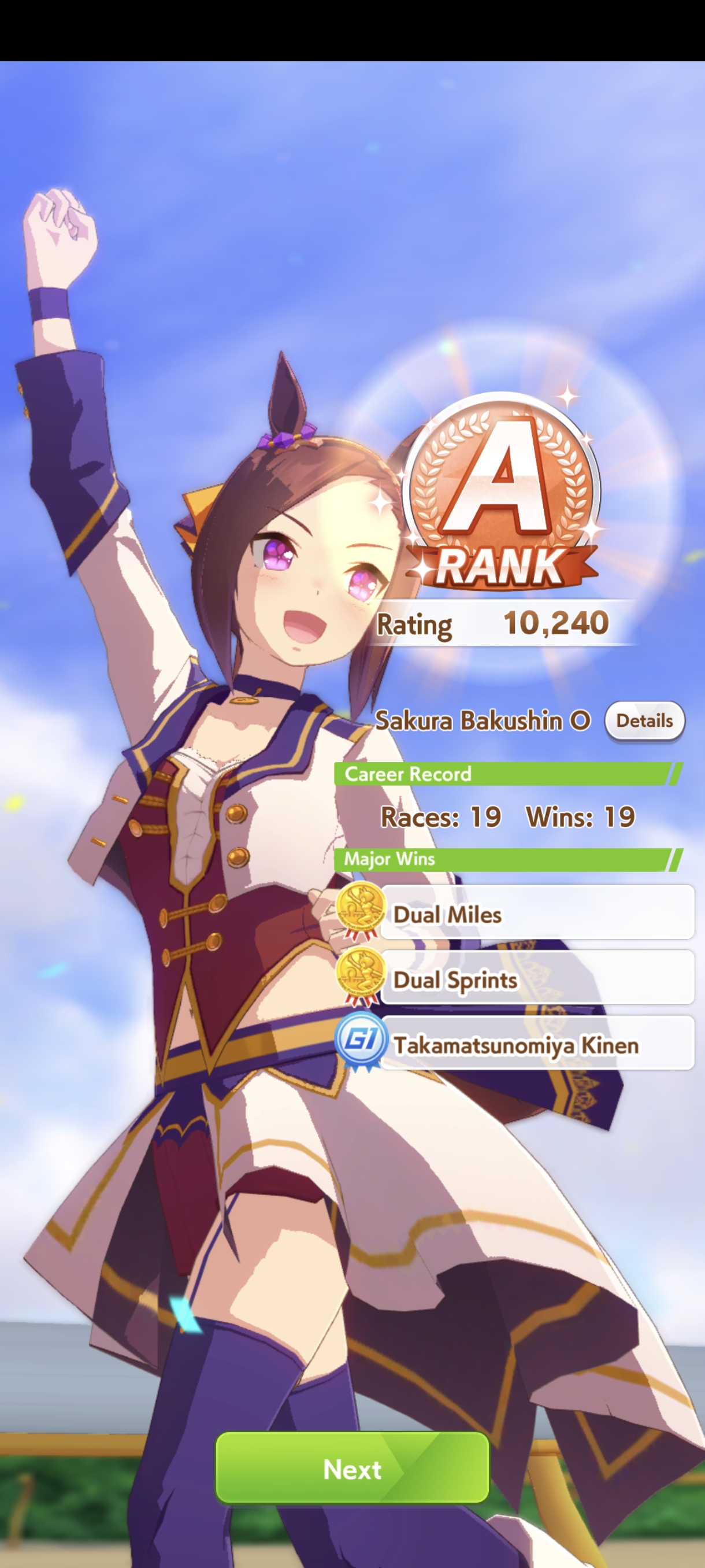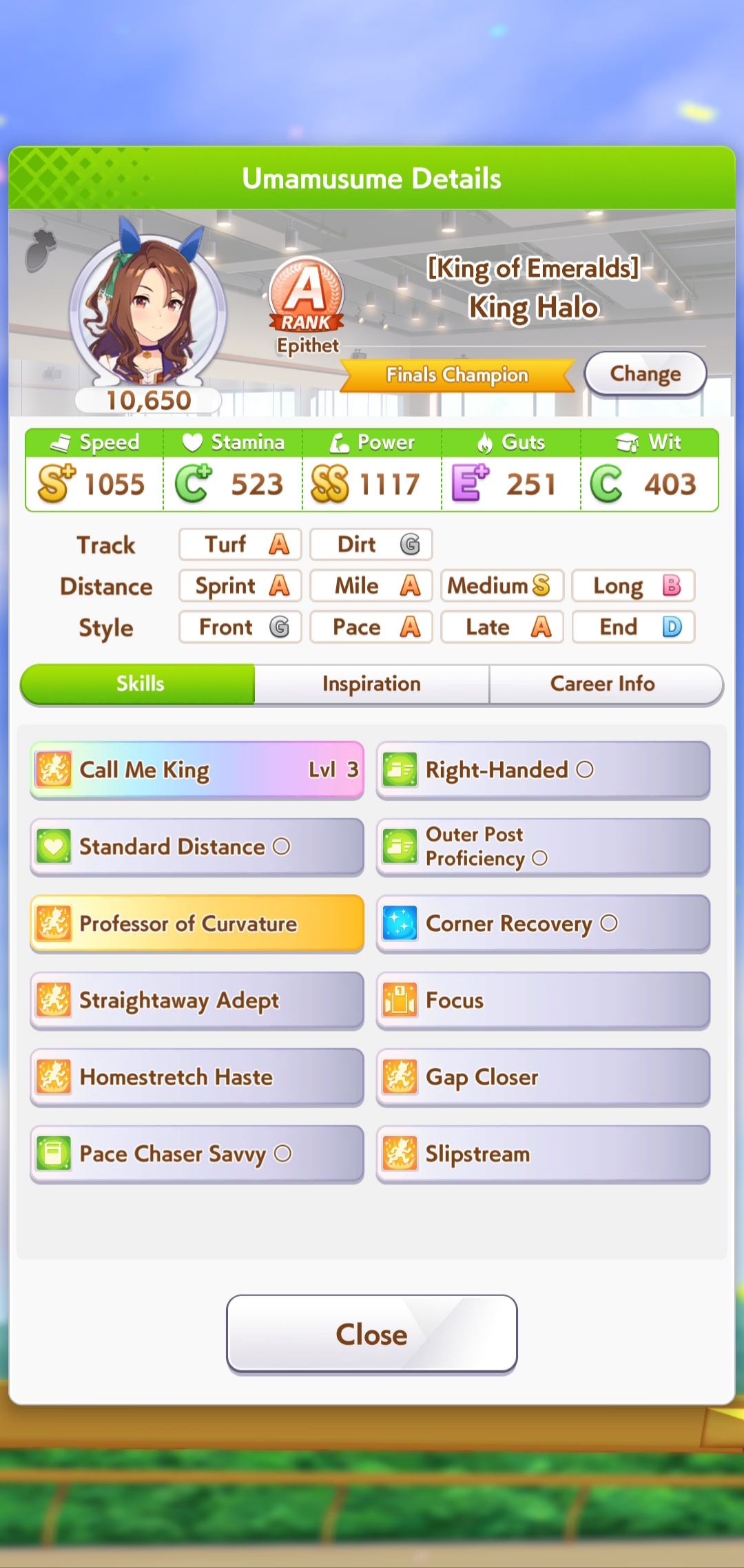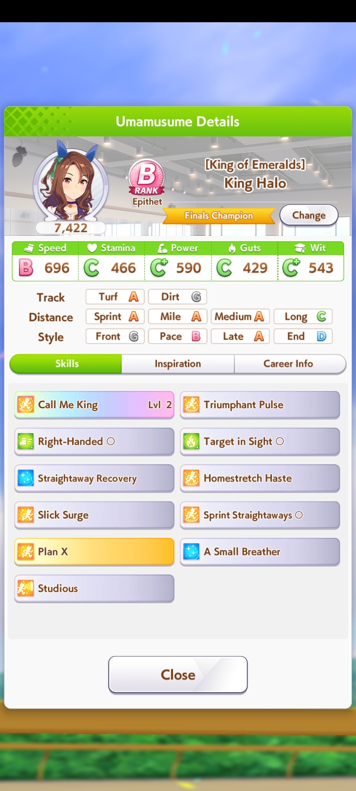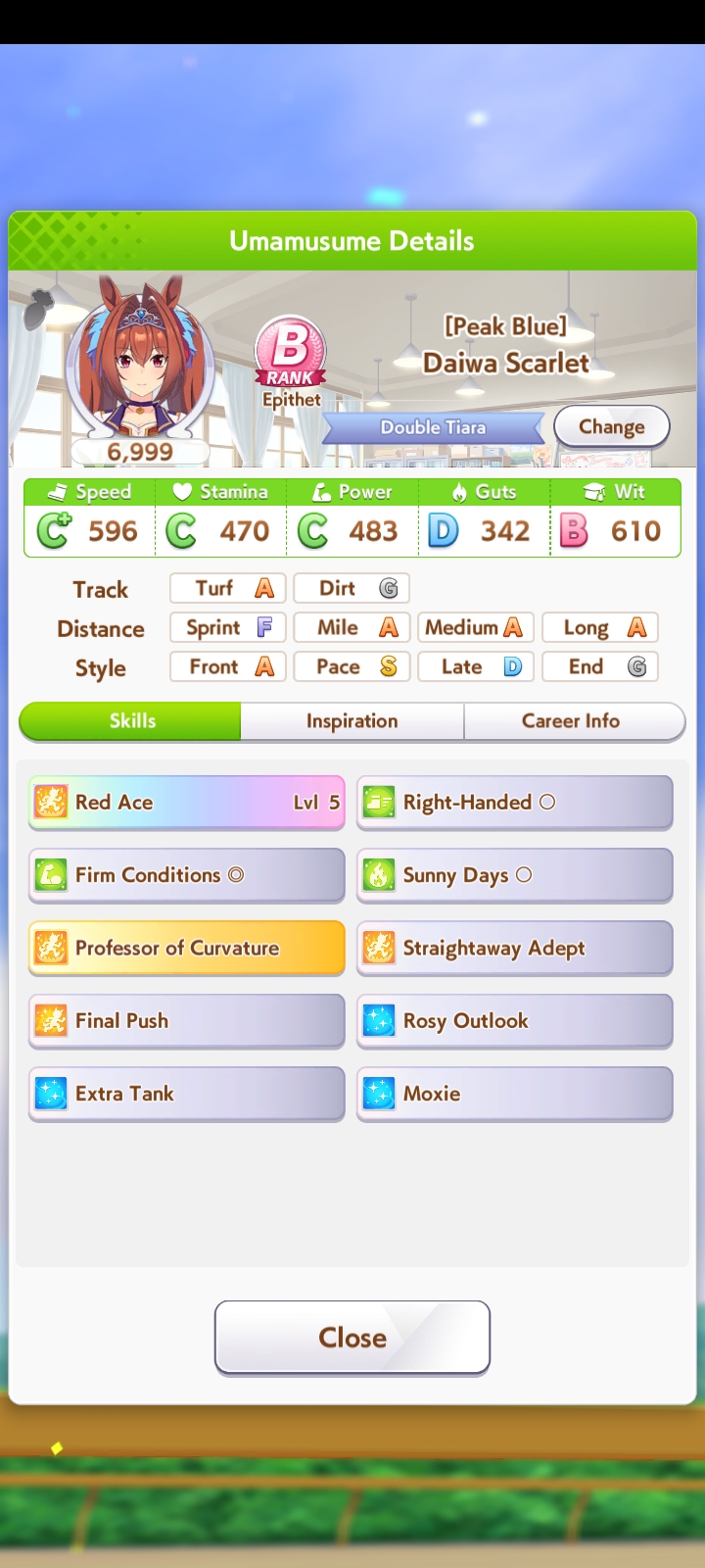 Всё-таки млбшная Китасан взятая у китовичков делает вещи. Даже на столько криво вкачаная Кинг смогла Уру пройти, да еще и не истратив практически ни одного будильника халявный не в счет. Таки шестая закомплитленая карьера из 60 всего, можно сказать символично, но не думал что это так тяжело будет.