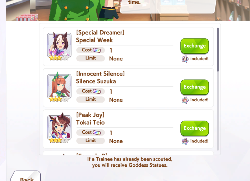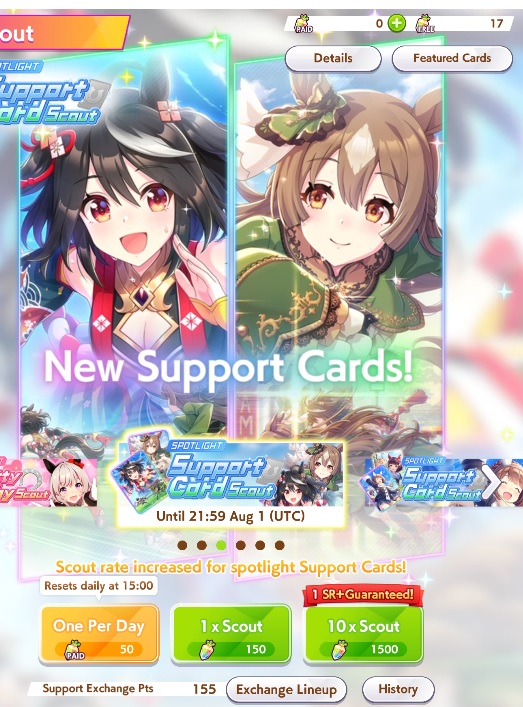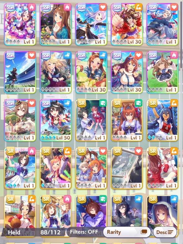 Так, ну раз вчера ночью большинство Тренеров спало, то решил спросить у бывалых и опытных игроков сейчас. В общем потыкался пока на том акке что первый и за 172 нападало вот так. Вычистил все доступные сторики, сейчас URA за Урару играю, на втором особо не тыкался так как я его дал челику который тоже решил попробовать игру и он может в любой момент махнуться акками. Теперь к самому вопросу: Карты, которые накезились у меня на первом скрине прям вообще юзлесс параша? И если терпимые, то успею ли докрутить оставшиеся 28 круток до спарка Китасан, а то как я понял она под самый конец решила задинмаить меня.
