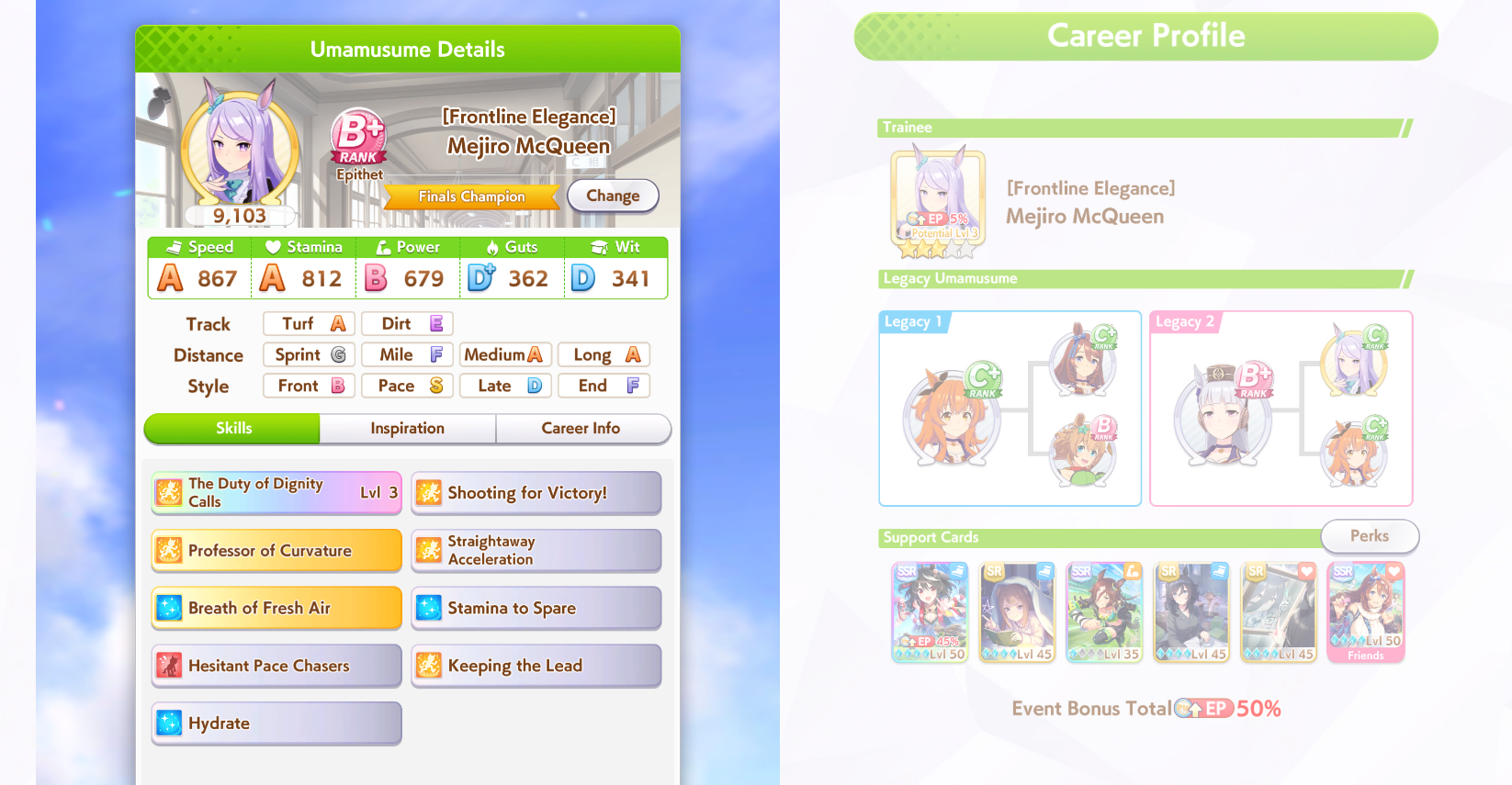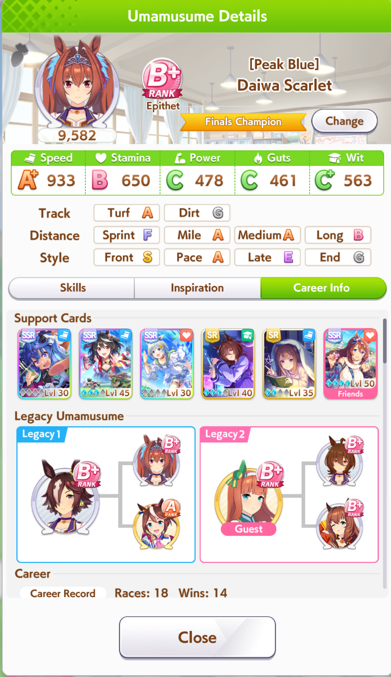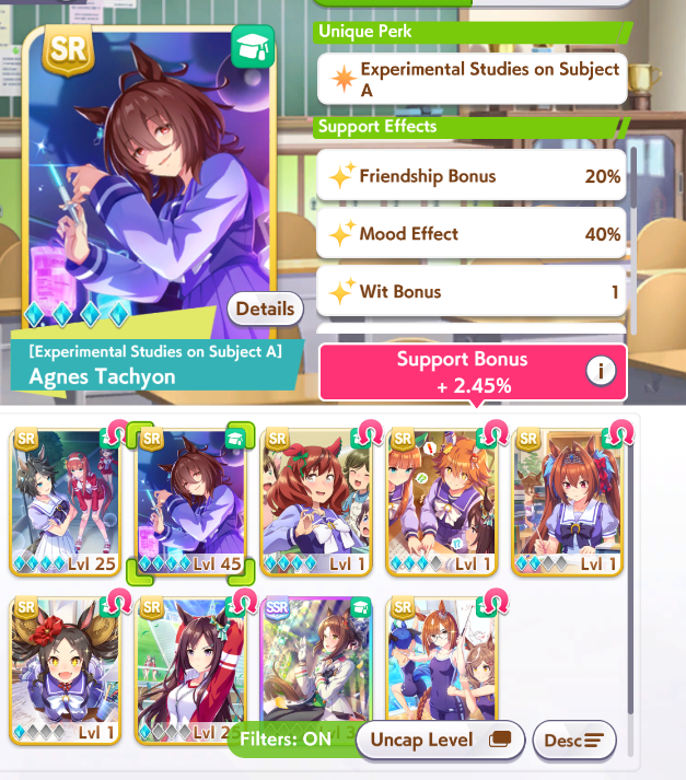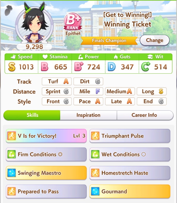 >>5339814 Лошади это просто палки для статов, этой игре успешность определяется саппортами. Без саппортов даже топовые лошадки будут страдать даже в начальной URA карьере.