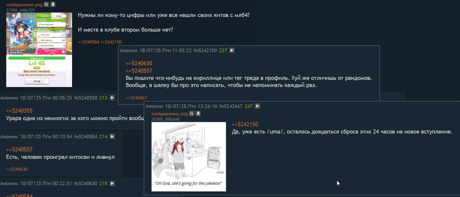 У нас есть два клуба: 2ch и 2ch^2. В первом залетевшие пораньше и потничи, во втором - преимущественно подпивасы. Чтобы вступить в клуб - напишите в описании своего профиля в игре тег треда или что-нибудь на кириллице. Если в первом клубе нет мест, то пишите в тред свой UID, чтобы админ кикнул рандома или инактив и отправил вам инвайт. Во втором треде 1-2 слота, обычно, всегда есть.