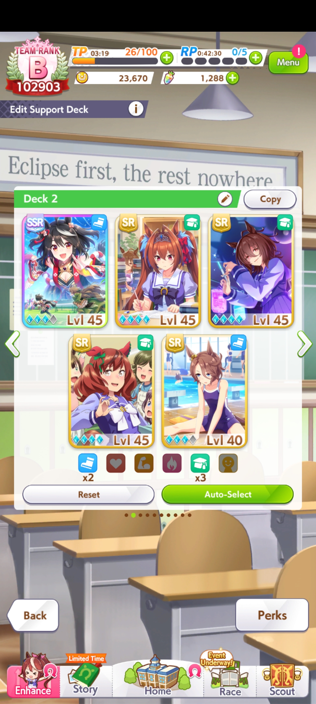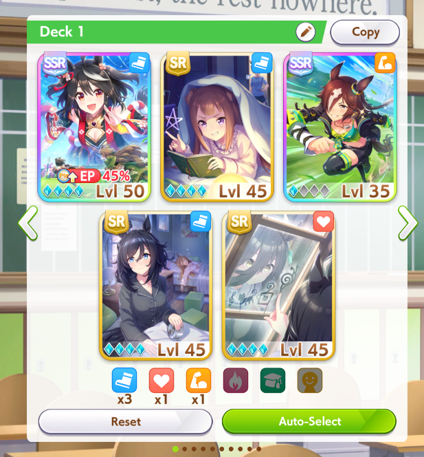 Попробовал по гайду из шапки сыграть за Водку, ибо на моем акке она пока единственная с B рейтингом, но тонной бесполезных скилов. Вылетел на 4 гонке, хотя все делал по гайду: собрал 3 скорости 2 стамины 1 павер, постоянно пикал радужки в тренировках. Сейчас прохожу забег с другой колодой - 2/2/2 скорости стамины павера, и у меня вопрос - почему в гайдах постоянно указывают сборки с перекосом в скорость/стамину, если это просто не работает? Не лучше ли сбалансированную колоду собрать?
