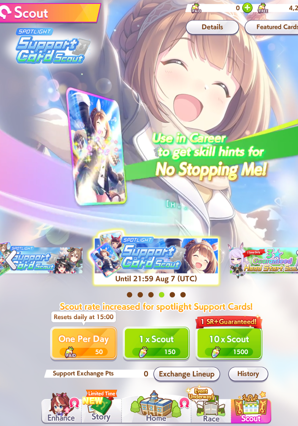 У меня всего 10 лошадей и несколько неиспользованных билетов -> впереди баннер Нариты Тайшин, которая мне нраица хоть и использует мусорный энд клозер -> план кинуть немного круток чтобы было за счет кого поднимать пвп рейтинг и лутать морковки.