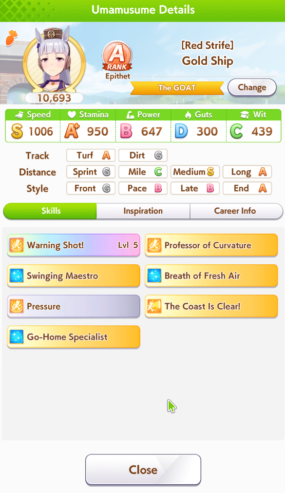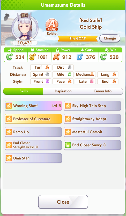>>5349553 Пошёл прочекал. Вот тяна челика из топа пвп. Ну короче у бегунов на Спринт и Маил дистанции реально сделать S ранг. Нужно поняше Потенциал до 5 поднять чтобы был более большой пул золотых скиллов. А потом они очень интересно качаются. Топ ПВПшеры втыкают млб эту обоссаную Тазуну, чтобы получить скилл Концентрейшен и больше очков за идеальный старт лошади в пвп. И они берут несколько млб карт на Вит. Потом короче качают Скорость и Вит, иногда отвлекаясь на Повер как мы на Мудрость. У меня есть млб Вит карты. Можно в принципе какую-нибудь Спринтершу до S ранга качнуть. Но жалко голду им потенциал поднимать. Или даже не спринтершу. У спринтерш обоссаные на фанатов карьеры. Лучше Маил бегунов. У них ещё высок шанс сигнатурный скилл до 5 лвла поднять.