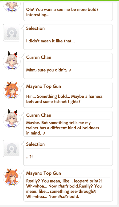 >>5279329 >ты будешь ставить киту, заимствовать ещё одну млб В этом URA режиме как раз беру какую-то карту на скорость где изображена Спе и Сузука и да, ничего кроме карточек не крутил. Мне писали тут пару дней назад, что в идеале надо бы добить раз уже столько откручено и потом на остатки (если бы они были ещё) >Вот ты играешь сейчас, как сам чувствуешь, хватает? Я вот вчера впервые полноценно закрыл карьеру Дайвы и прям кайфанул от процесса, но я не шарю, если карты фулловые, то они будут давать больше абилок и статов при выборе тренировки где присутствует эта самая лошадка? Если да, то хотелось бы конечно прям чтобы прям мёд в виде статов и способностей лился рекой чтобы прям превратить свою ученицу в ебейшего мустанга. А так в целом скорость почти тысячи разогнал и прям офигел с того как балдёжно капают статы под конец с радужных практисов.