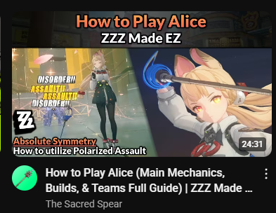 In general, it’s nice to have a variety of Anomaly agents so you can make more Disorder teams depending on the enemy. However, Alice + Jane is just so unhinged that if you like both characters then you will have a fun Physical team to play. Polarized Assault being its own separate anomaly is super important and allows Alice to make a single attribute Disorder team possible. Now if only we can get more Physical weak bosses! https://www.youtube.com/watch?v=YJO33_zQ9tc