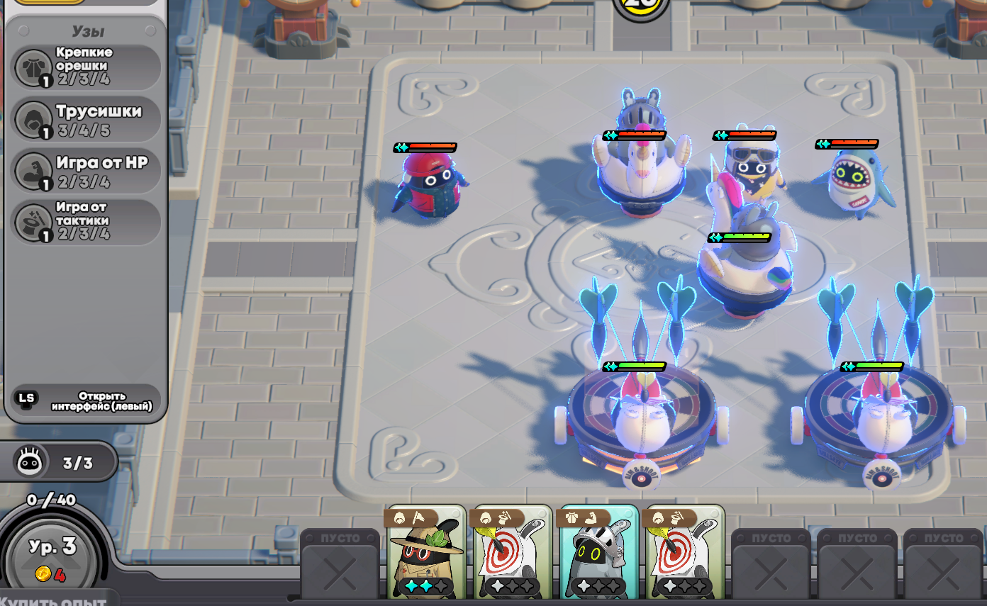 >>5356359 В самом начале сразу покупаешь за монете 2 уровень магаза и ставишь два банбусика на оставшиеся деньги. Потом терпишь до 3 уровня, не тратишь монеты, можно купить если только сразу выпали хорошие, без реролла магазина. В начале желателньо брать синергирующих банбу или тех, у кого хп/защита больше. Потом до 4 уровня тоже старайся не тратить все монеты на реролл магаза. За каждые 10 монет в кармане тебе дают кэшбек. Рекомендую в начале брать крепких орешков, если будет возможность.