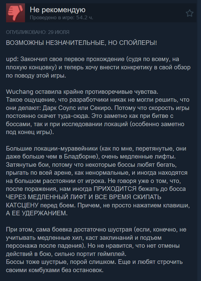 >>5356349 Вот еще например коммент из стима. >При этом, сама боевка достаточно шустрая (если, конечно, не учитывать медленные хил, каст заклинаний и подъем персонажа после падения). Но не нравится, что нет отмены действий в бою, сильно портит геймплей. С откидыванием очень большие проблемы, потому что возможность мгновенно отпрыгнуть с небольшим кд отсутствует, поэтому если тебя опрокинули, то ты 2-3 секунды лежишь и молишься, чтобы ты встал быстрее, чем враг тебя добьет следующей атакой.