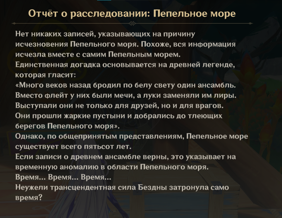 >Пепельное море было, но его не было. >По пепельному морю путешествовал Стенли со своим другом, но пепельное море исчезло 50 лет назад. >Лор как бы есть, но его нет и ляо срет взаимоисключающими параграфами по кд, прикрывая их фиговым листочком временных аномалий.