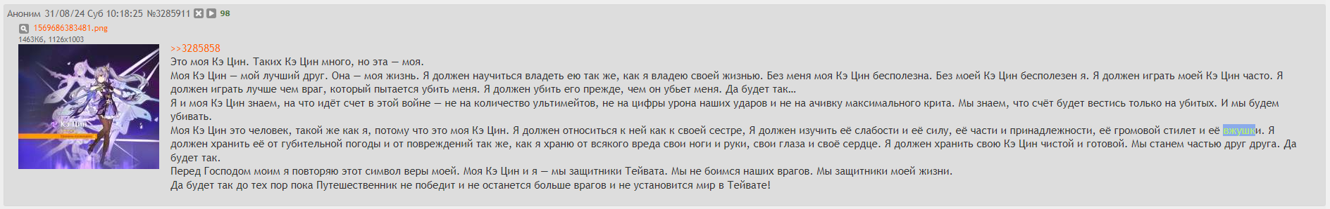 >>5358867 Эй! Всех то не равняй, ага. Мне лично вообще похуй что там у кого за игры, я в Геншин играю и мне норм. А с гордостью бить себя в грудь когда Ляо в очередной раз больше Куро-гамес заработал привычки не имею и вообще странным считаю. Так что не надо тут.