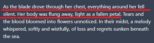 >>5355258 Так он в нее меч метнул и убил на месте. Там некому тонуть было, ибо она буквально в тот момент погибла и уже пошла регенерировать в свое Соноро (Ровер о ее способностях и трагедии знал). Собственно, она и сама прекрасно понимала, как это все закончилось, отчего и выдавливает свое i'm sorry предсмертное.