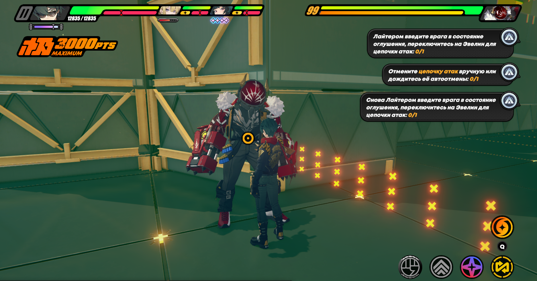 Собственно когда Босс или враг застанился у него тоже полоска стана есть сработает цепочка атак.