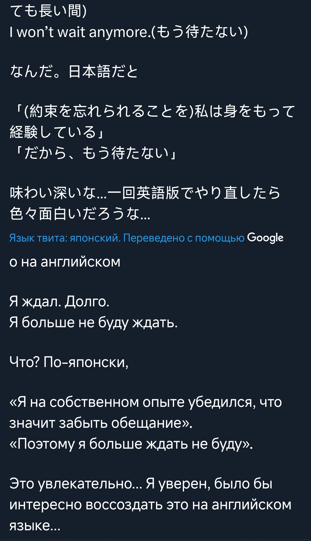 >>5360683 Хуйня, в англюсике есть важная приписка про то, что у Юноны идёт отсчёт заново и прерывается при смене. Такое от балды не могло появиться, это просто абсурд тогда, что настолько разный текст существует. Пока не будет вменяемого слива, или презентации, это всё не имеет значения. Тут даже на ошибки в переводе не спихнёшь, т.к. это не ошибка, это ёбаный кусок текста, который не мог взяться откуда то просто так.
