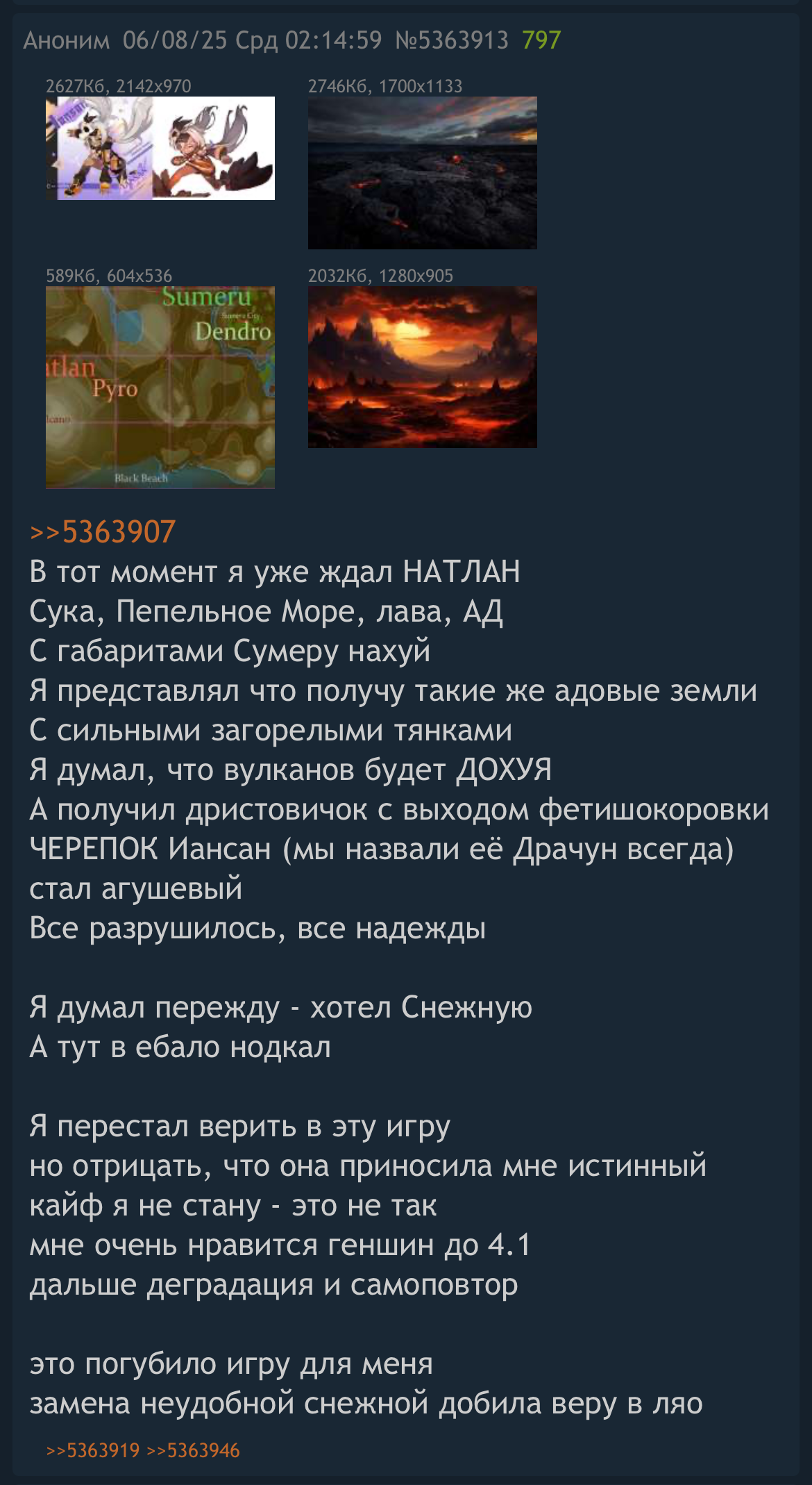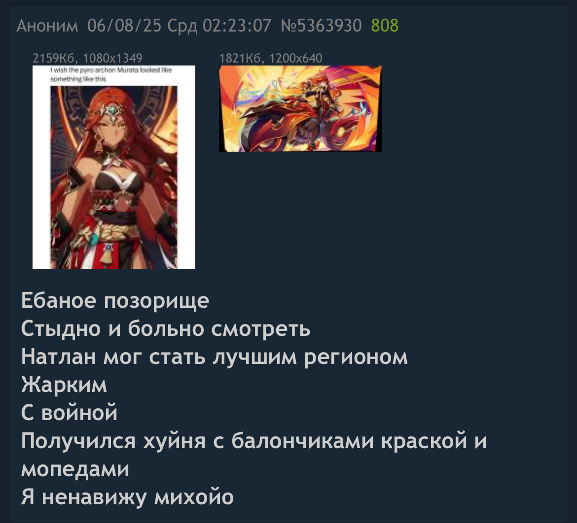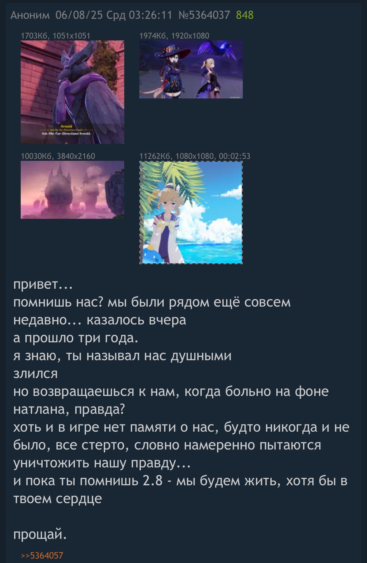 ✦ FAQ и архив треда https://rentry.co/genfaq2chhttps://text.icu/genshinfaq ∙ Скрытие постов со стикерами https://text.icu/gensticker