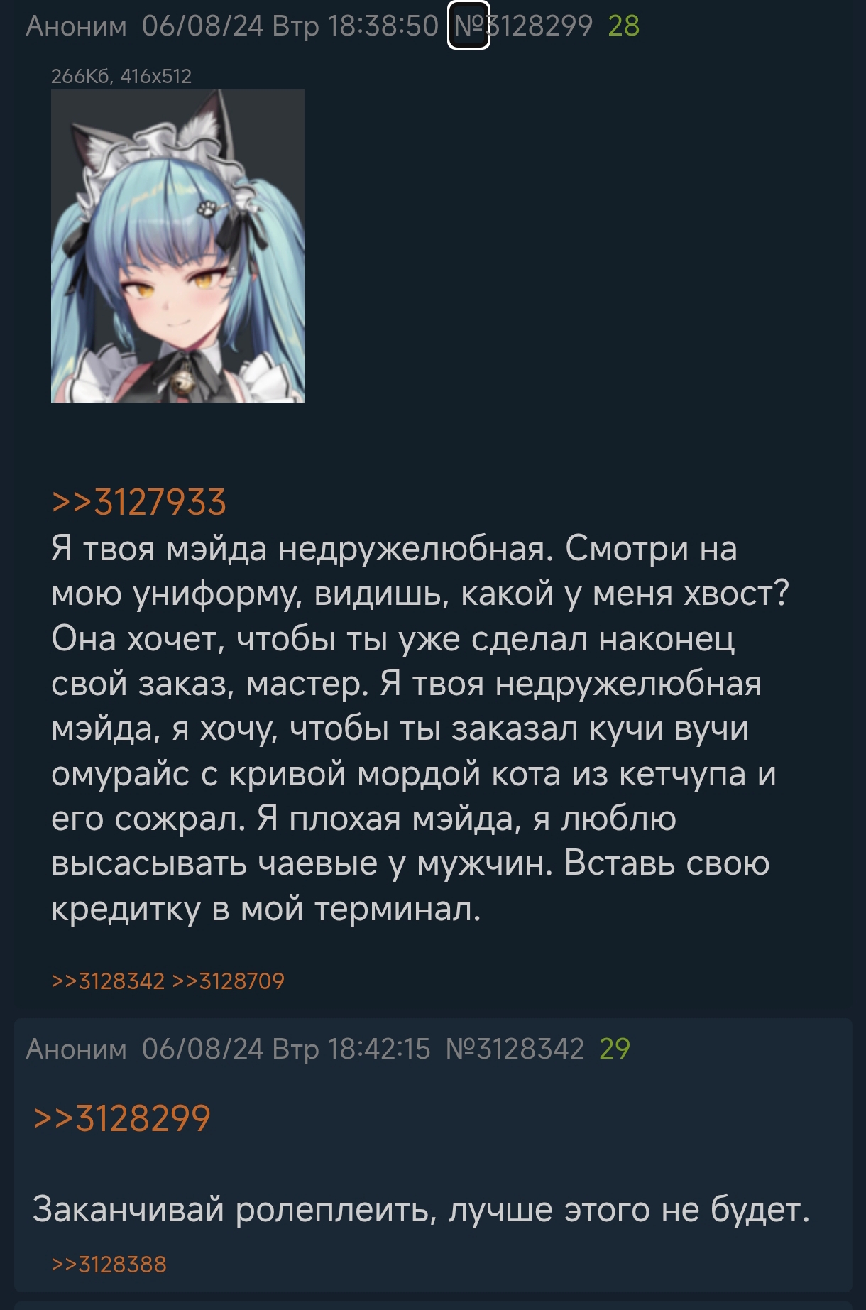 Вообще, прикрутить бы уже нейросетку к игре, что ли. Чтобы можно было отвечать жопкам то, что хочешь, как в настоящей ролевой игре. А они уже согласно своему характеру повеления, знаниям и лору, отвечали соответствующе. Вышло всяко бы не хуже потужных диалогов штатного писаки. Я видел подобную симуляцию в Морровинд и это довольно впечатляюще. Может новая гача будет такой. У каждого свой уникальный экспириенс. Но тогда вряд ли игра будет бесплатной.
