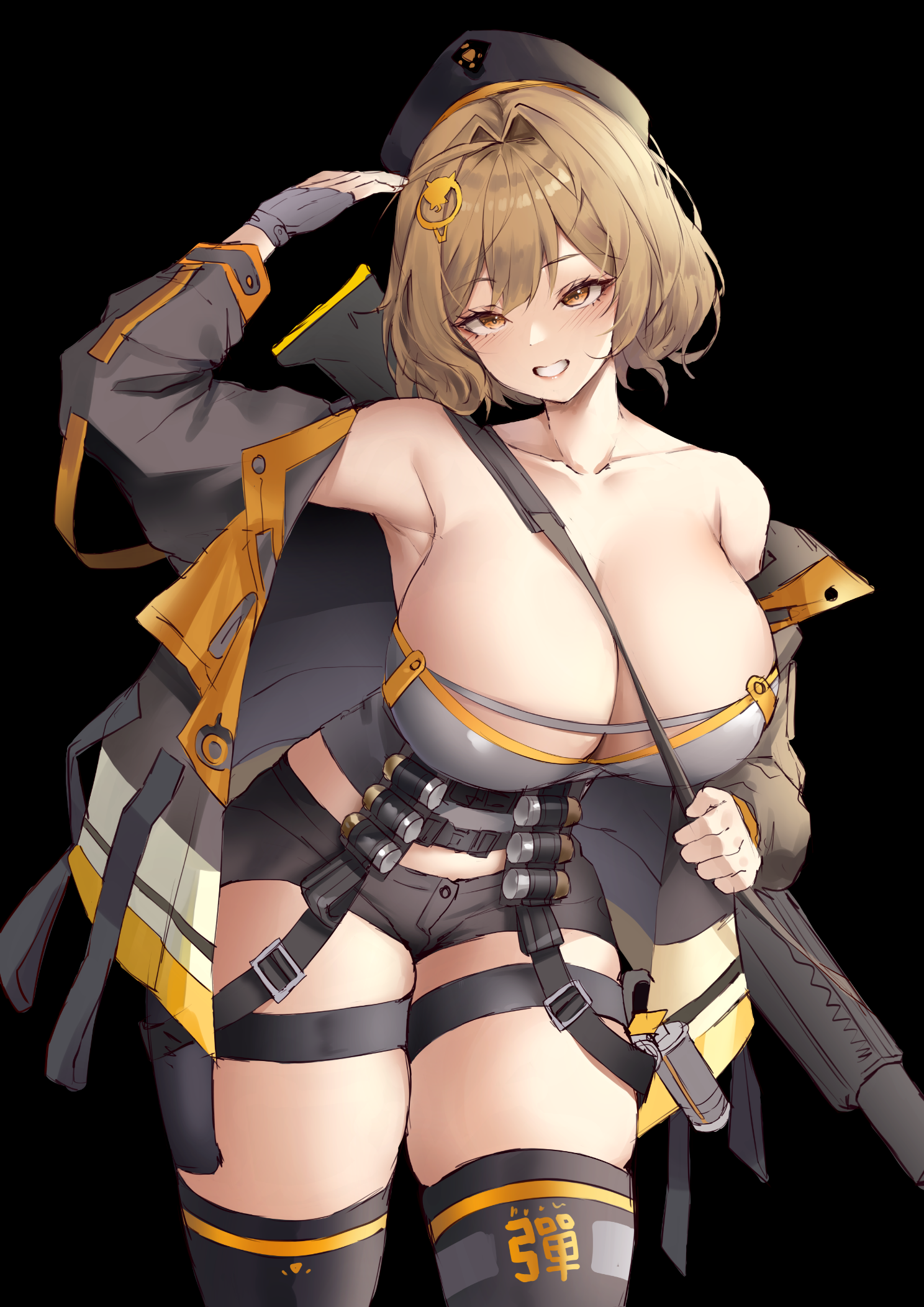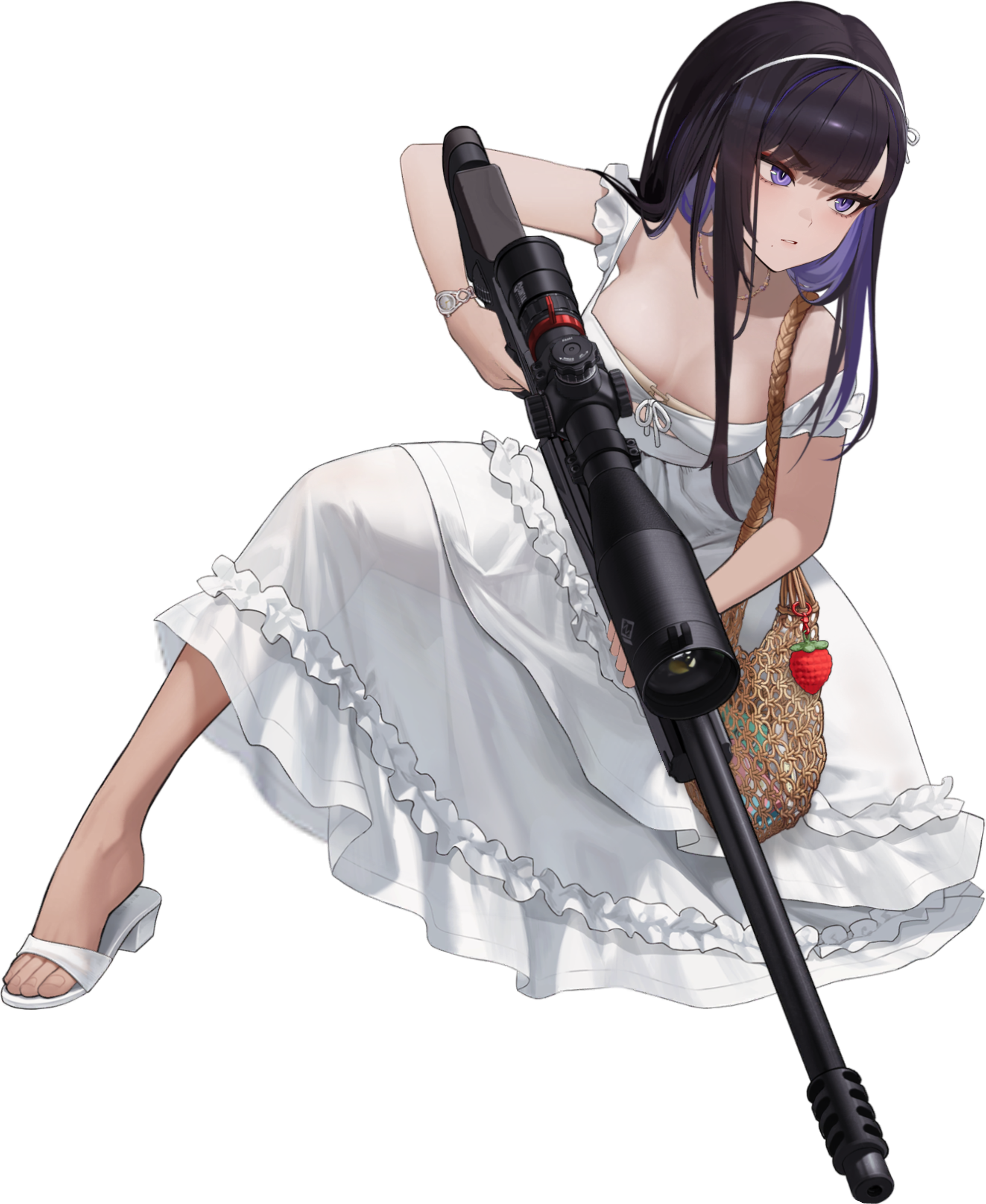 Убрать юбку/пальто (она та, кто скрывает большую часть своей попы в группе). Исправить поворот головы (это касается не только этого изображения, это также заметно в недавнем PV для мероприятия). Изменить лицо в позе для стрельбы, чтобы оно соответствовало позе стоя (у неё пухлые щёчки, как у младенца, что не соответствует её образу «старшей сестры»).